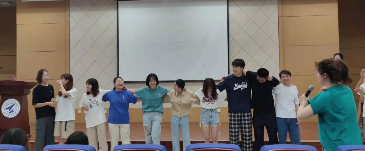 在心有千千结游戏中,伴随着打结、解结的过程,学们相互熟络起来,报告厅里欢笑不断,大家玩的不亦乐乎。游戏强调了集体的作用与思维的多样性,心有千千结,也有千千解。
