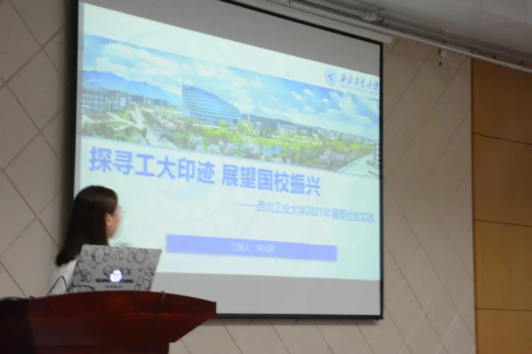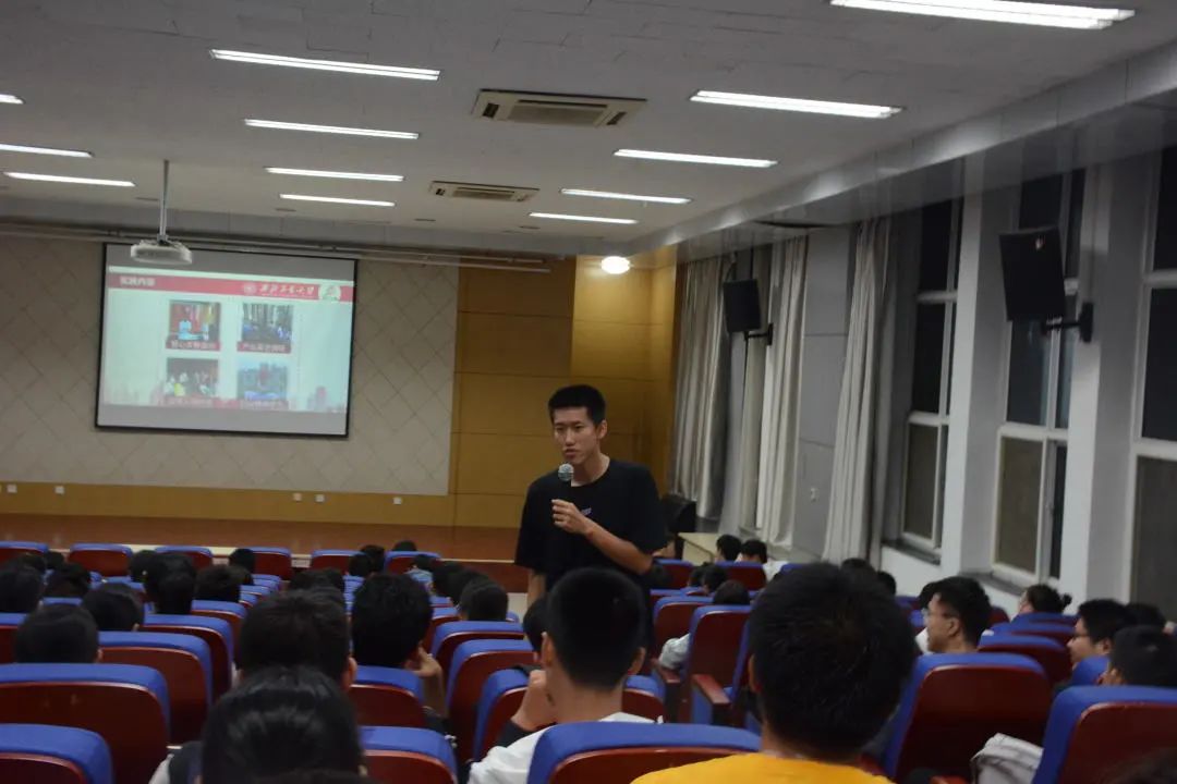 最后,林雨田同学进行了以“探寻工大印迹,展望国校振兴”为主题的暑期社会实践分享汇报。实践队通过走访结合座谈的调研模式,对中共一大二大纪念馆及会址等的红色革命遗址、西工大太仓校区及长三角研究院、校友企业、外资企业等展开调研,围绕学校学科特色、重点工作、工大精神,到国防科工单位、装备基地、试验场所体验学习。