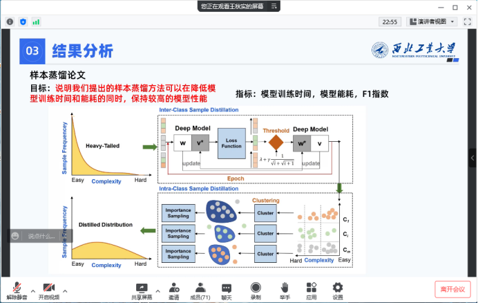 结果分析方面,王秋实同学指出结果分析是为了验证所提出的模型或方法的有效性,因此在进行结果分析时应明确分析目标,确定指标以衡量实验结果是否达到预期,之后进行对比试验说明所提出的模型或方法好在哪里。他以样本蒸馏等论文为例,给出了进行结果分析的三点建议:结果分析应把握住论文想要说明的问题,结果分析的好坏直接决定了论文是否会被录用;结果分析要聚焦于论文中的创新点,通过结果分析要向审稿人证明自己论文中的创新点确实是有效的;结果分析不要单一的只有图或者表,要图表结合,语言精炼的去进行阐述。