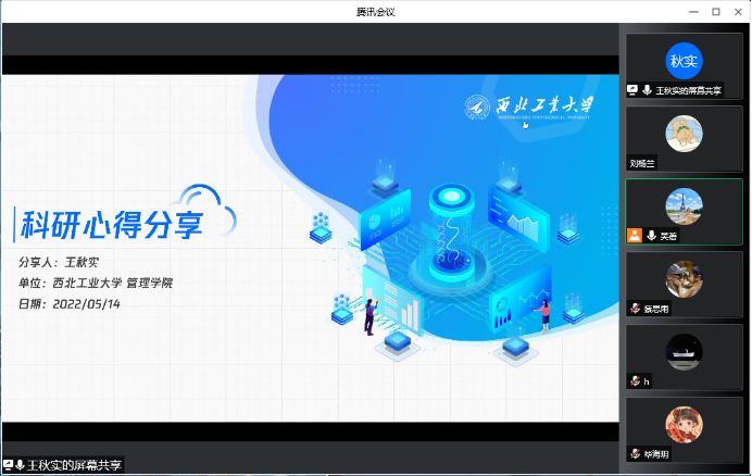 首先,吴蓓老师向同学们介绍了王秋实同学优秀的个人基本情况,王秋实是漫岛动漫 2019级管理科学与工程专业硕士研究生,主要研究方向为仿真优化和数据挖掘,导师为王阳教授。硕士期间曾获2020全国大学生物联网设计竞赛(华为杯)全国总冠军、获2020华为开发者大赛IOT赛道全国12强;在管理科学基金委认定的B类期刊《工业工程与管理》上发表论文1篇,在网络安全领域顶级期刊《IEEE Transactions on Depedable and Secure Computing》上发表论文1篇;参与国家级、省部级项目4项;主持漫岛动漫 硕士研究生创新创意种子基金1项。