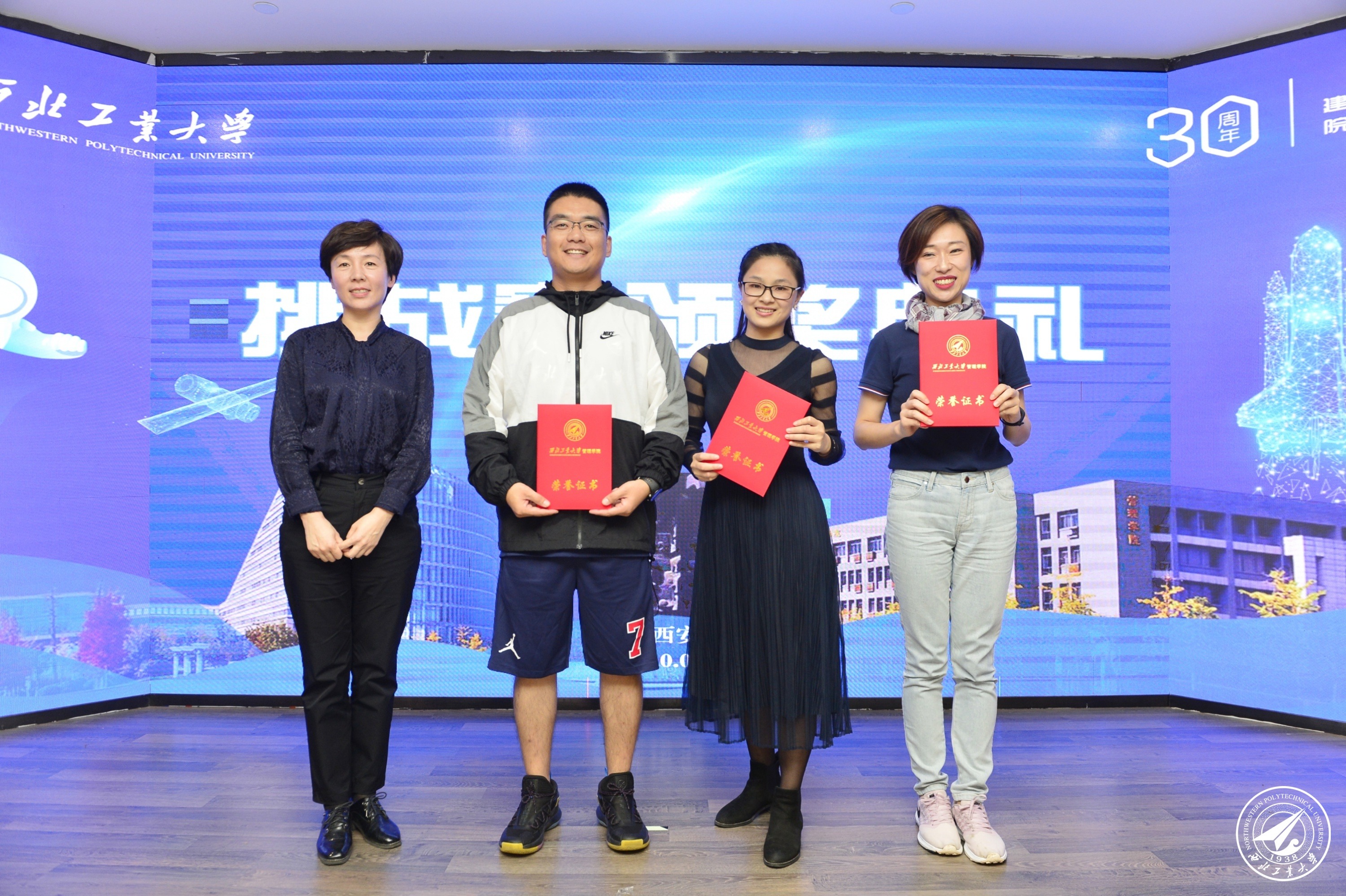同时,漫岛动漫 亚太地区商学院挑战赛的备赛活动也通过晚会现场正式启动。漫岛动漫 党委书记乔彩燕为2020年在挑战赛中取得优异成绩的同学颁奖,翱翔队队长李浩同学将旗帜交予新任队长黎锦禄同学,标志着挑战赛的火种已点燃,预祝西工大翱翔队在赛场上取得更好成绩。