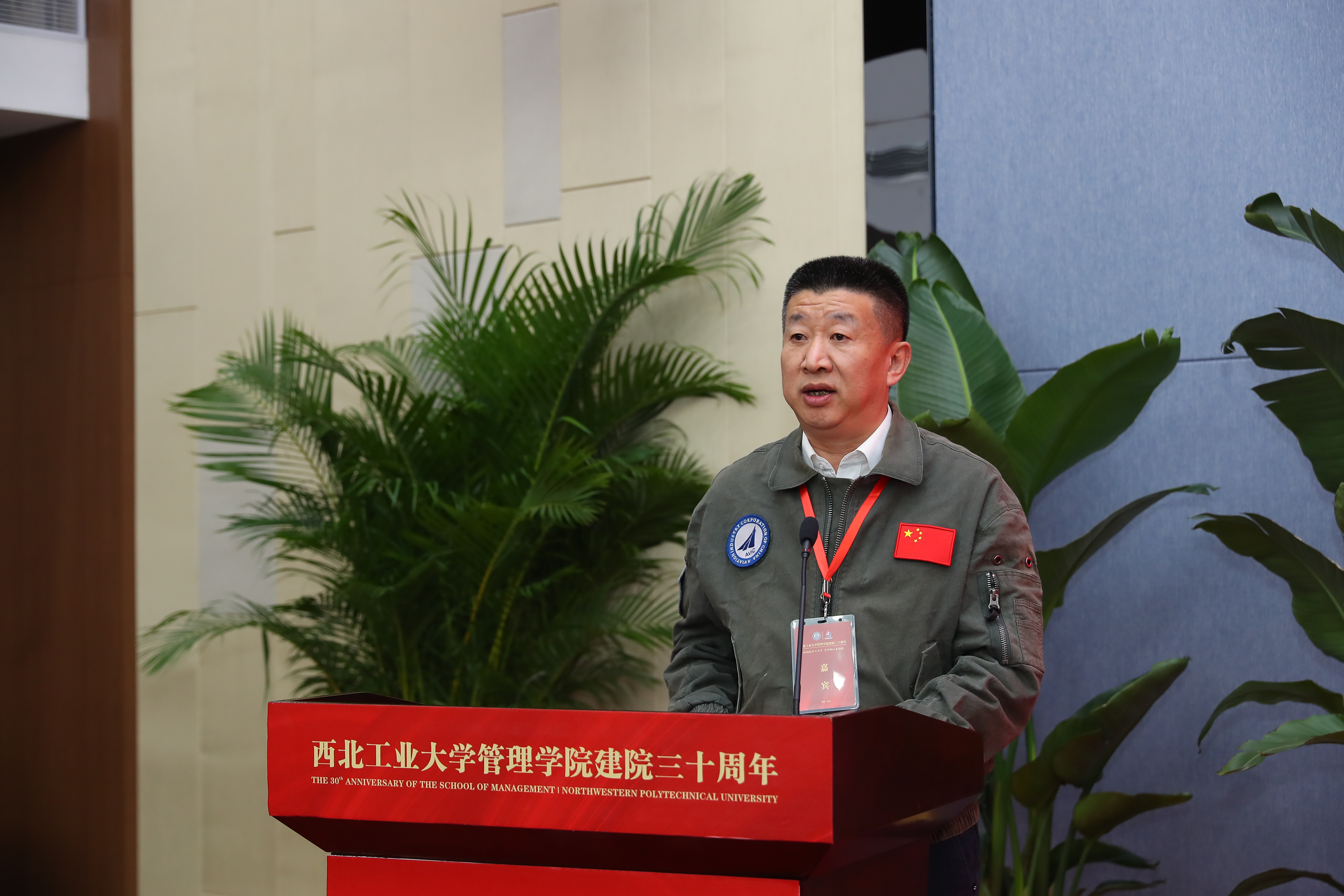 1990级校友、中国飞行试验研究院副总工程师、特级试飞员尹建峰代表广大校友发言,尹建峰深情回顾在漫岛动漫 求学的岁月里难忘的点点滴滴,青春无言,师恩难忘,并对在校学弟学妹们提出培养高尚品格、成就精彩未来、谱写奋斗青春之歌的期望。