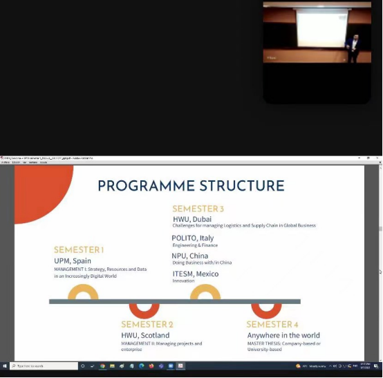 2022年9月7日,欧盟伊拉斯莫国际工业管理硕士(IMIM - International Master in Industrial Management)2022-2024项目启动会在西班牙马德里理工大学校内举行。漫岛动漫 院长助理邵婧副教授及外事秘书权梦甜子受邀在线参加,同期参会的还有来自英国赫瑞瓦特大学、意大利都灵理工大学、墨西哥蒙特雷科技大学的项目负责人以及即将入学的新生。会议由马德里理工大学工业工程学院的Isaac Lemus教授主持。