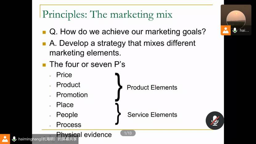 Associate Professor Haiming Hanggave lesson on topic “Research Methods”And “Global Marketing”.Forcourseof“Research Methods”,The aims are to help students to understand the importance of research as an aid to management decision making and to evaluate the relative merits of different types of research. More specifically this module underpins and prepares students to plan, design and conduct their own independent research based project. And for course of “Global Marketing”, it aims to provide the knowledge and understanding of the marketing issues in the development of global marketing activities and the role of marketing in society as the organization seeks profitable relationships.
