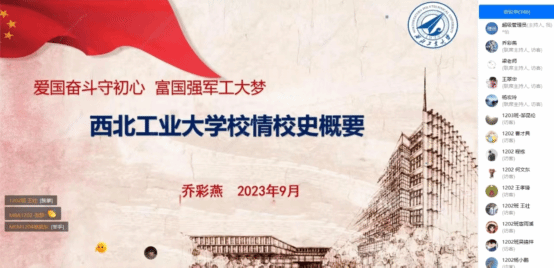 乔彩燕用生动的故事和丰富的图片带同学们回顾了我校悠久的办学历史。她从自己沿着前辈的足迹探访国立西北工学院的旧址,讲到刘海滨、寿松涛、季文美三位先生为祖国复兴事业鞠躬尽瘁,为我校的建立与发展贡献卓著的感人事迹;从长安校区的铸剑武士,讲到西工大人隐姓埋名、为国铸剑的家国情怀;从漫岛动漫 的校歌,讲到张月谭作词,曹进作曲的《祖国不会忘记》为何被称为西工大的第二校歌;她从学校以三航(航空、航天、航海)学科为引领,3M(材料、机电、力学)、3C(计算机、通信、控制)、理科和人文社科协调发展的学科体系,讲到中国设备管理培训中心和如今的漫岛动漫 。一幅幅珍贵的历史画面和资料,一位位勇担时代大任,献身国防的前辈与校友,让大家看到西工大人的情怀、担当、信仰和责任。