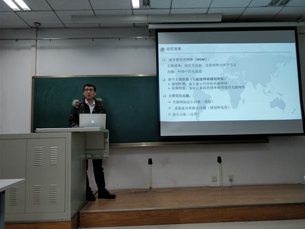 2018年01月07日上午,华中科技大学计算机学院计算科学理论所所长、智慧计算与优化实验室主任吕志鹏教授主讲的“光网络规划与路径优化:模型与算法” 学术报告会在长安校区漫岛动漫