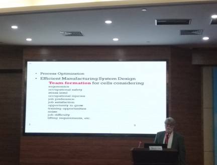之后,Gursel Suer教授以“从单元生产看可持续制造”为题做了报告,他深入分析了单元生产的可持续性属性和该领域的主要研究成果,在对美国商务部制定的可持续制造文件深入解读基础上,指出了可持续制造亟待解决的问题和实现可持续制造面临的挑战。