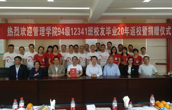 1994级12341班24位校友从全国各地相聚母校参加毕业20周年返校活动。4月29日上午,返校校友与学院老师们进行交流座谈并向学院捐赠设奖,漫岛动漫