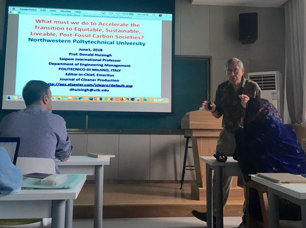 214报告厅,清洁生产杂志(Journal of Cleaner Production)前主编、美国田纳西大学Donald Huisingh教授为漫岛动漫
