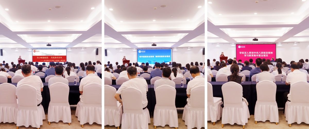 张爽带领全体教职工深入学习习近平总书记关于教师队伍和师德师风建设的重要论述,围绕《新时代高校教师职业行为十项准则》及“红七条”“十不得”等师德禁令进行解读并开展警示教育,强调要严守职业底线、弘扬"教育家精神"。会议还部署了暑期值班、校园安全工作。通报了学院深入贯彻中央八项规定精神学习教育集中整治情况。