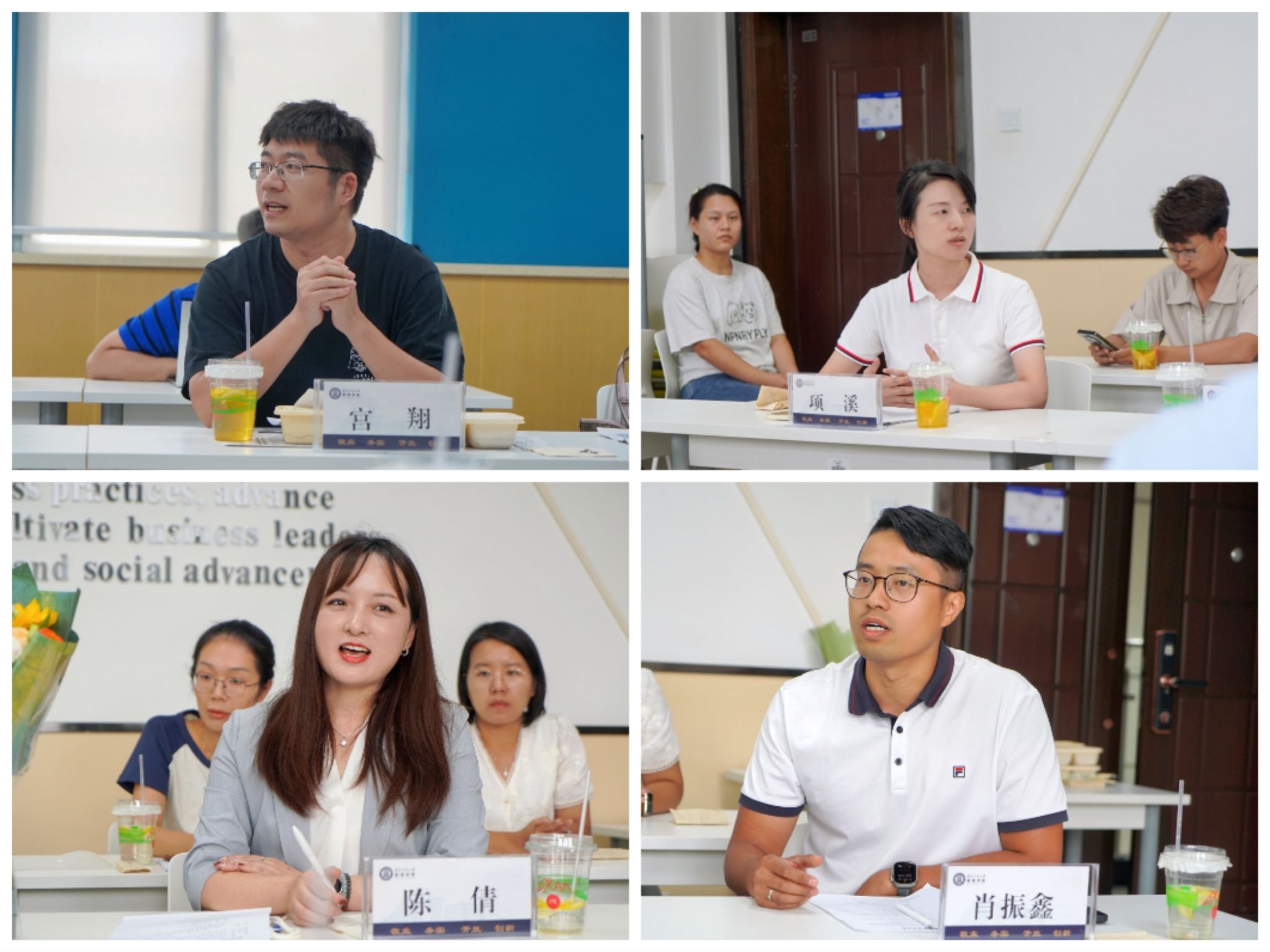 4名新入职的青年教师代表依次做自我介绍,围绕个人成长感悟、教学科研心路历程等方面进行交流发言。畅谈到校工作以来的收获与感受,并纷纷表示,要立足当前岗位,努力做“经师”和“人师”相统一的“大先生”,持续为党和国家培养德智体美劳全面发展的社会主义建设者和接班人!