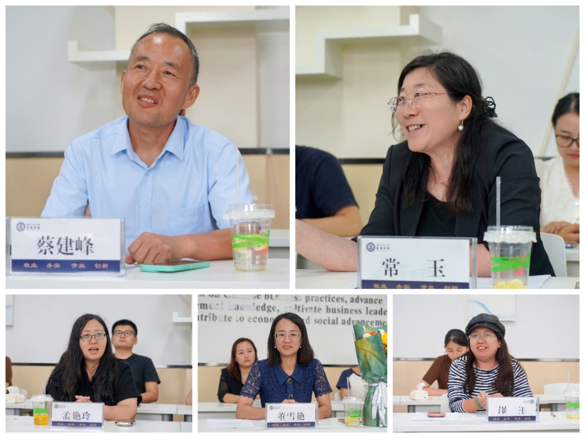 立德树人奖获得者蔡建峰老师、研究生优秀导师常玉老师、优秀班主任孟艳玲老师、研究生最满意教师和“十育人”先进个人获得者董雪艳老师、优秀青年教师(吴亚军)一等奖获得者王娟老师依次发言。几位近期受学校表彰的教师代表围绕会议主题,结合自己的教学、科研和学习经历,讲述了他们多年如一日在各自专业领域倾注的大量心血,阐释了“小我”融入“大我”的从教情怀。