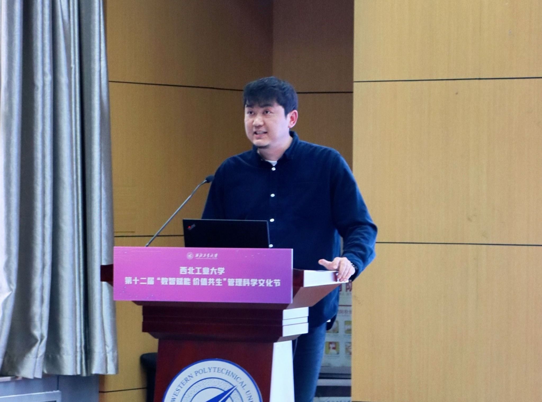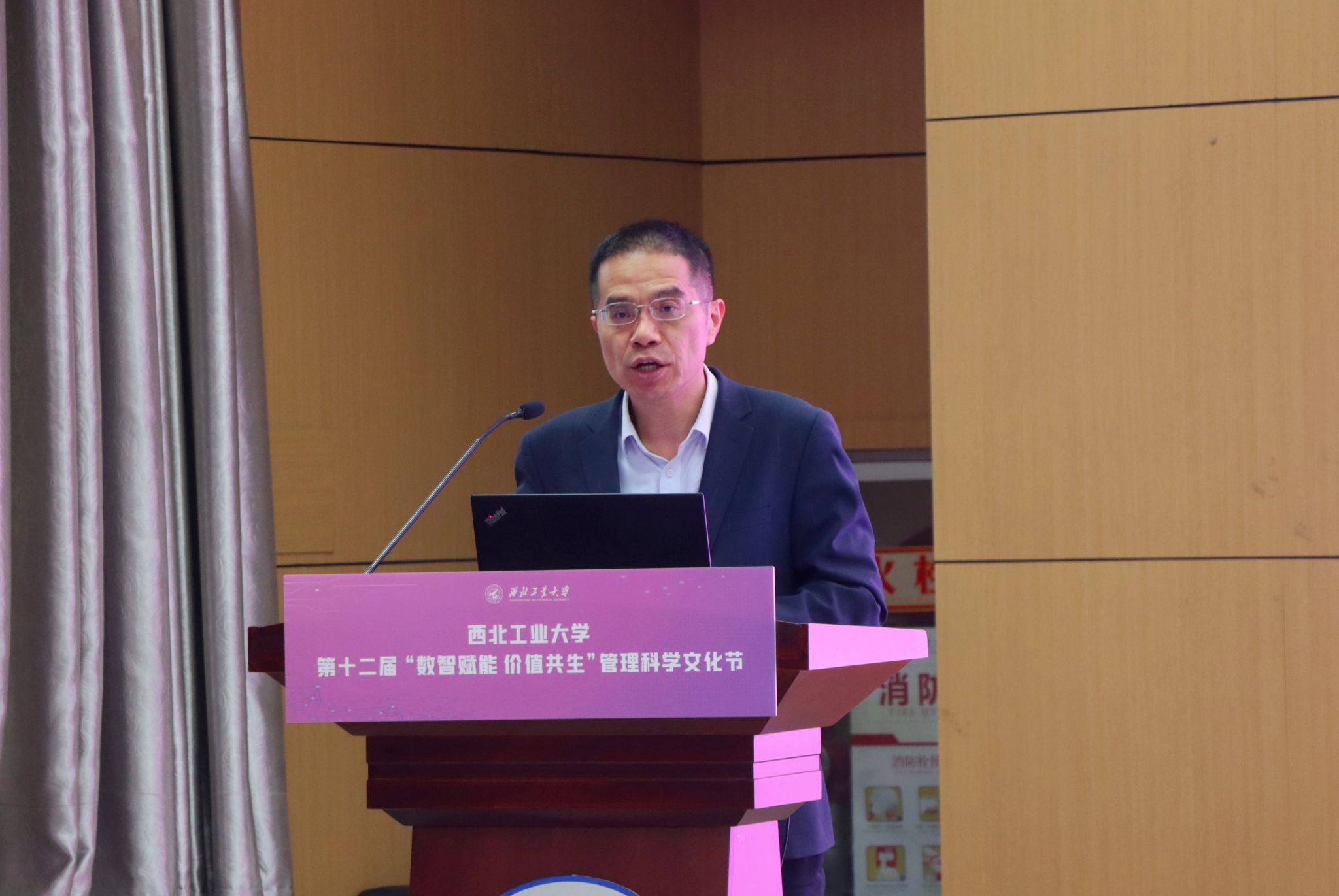 车阿大在致辞中回顾了近年来学院在学科建设、科学研究、人才培养方面取得的成绩,介绍了学院举办管理科学文化节总体考虑。他表示,当前人工智能、物联网、区块链等技术的快速发展深刻重塑管理生态与发展格局,希望通过举办管理科学文化节,搭建一个开放、互动、前沿的“第二课堂”交流空间,让同学们理解数据如何重塑管理逻辑、如何驱动组织变革、如何实现价值共创,在思维碰撞中激发创新灵感,在实践探索中提升专业素养,深化“第一课堂”与“第二课堂”的协同互补。