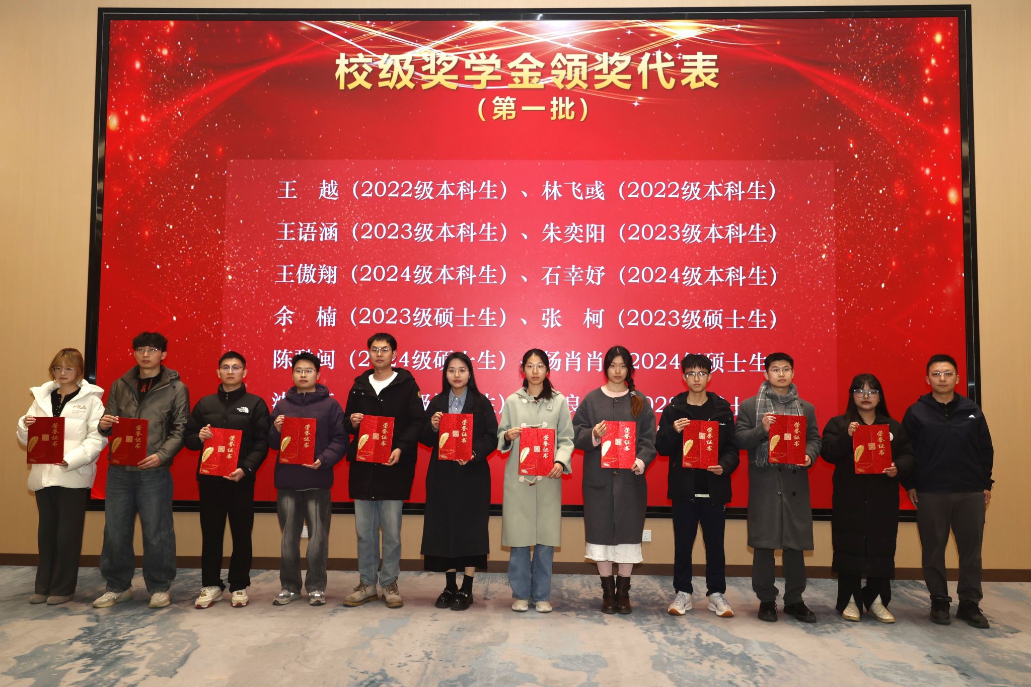 本次大会表彰了2024-2025学年获得各级各类荣誉奖励的先进集体和优秀个人,包括在党内、团内表彰中获奖的集体7个、个人58人次,国家奖学金获得者28人、专项奖学金获得者25人、校级奖学金172人、院级奖学金29人,校级先进集体11个、院级先进集体4个。