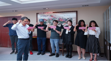 在院长车阿大的带领下,几位新进青年教师进行了庄严的入职宣誓仪式。他们紧握右拳,誓言铮铮、铿锵有力地面对国旗表达对党的教育事业的忠诚和对教书育人神圣职责的坚守。
