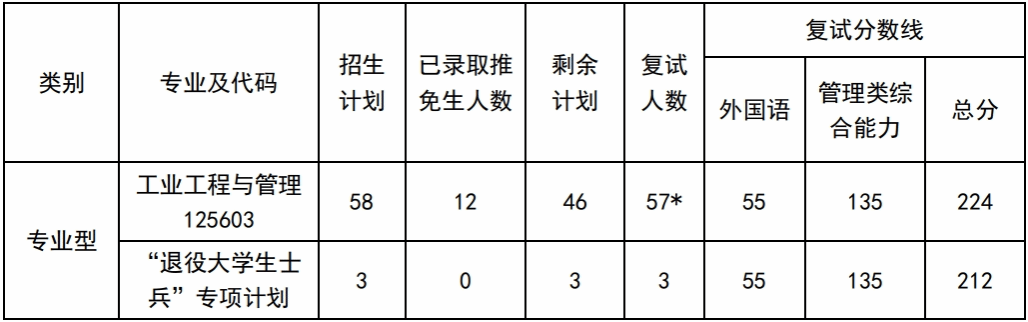 *说明:复试比例为120%,因总分224分考生有4人,故复试人数为57人。