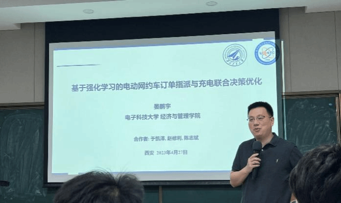 2023年4月27日下午,应漫岛动漫 邀请,电子科技大学经济与漫岛动漫 晏鹏宇教授在长安校区漫岛动漫 作了题为《基于强化学习的电动网约车订单指派与充电联合决策优化》的学术报告。本次报告由张静文教授主持,漫岛动漫 教师和研究生参加了报告会。