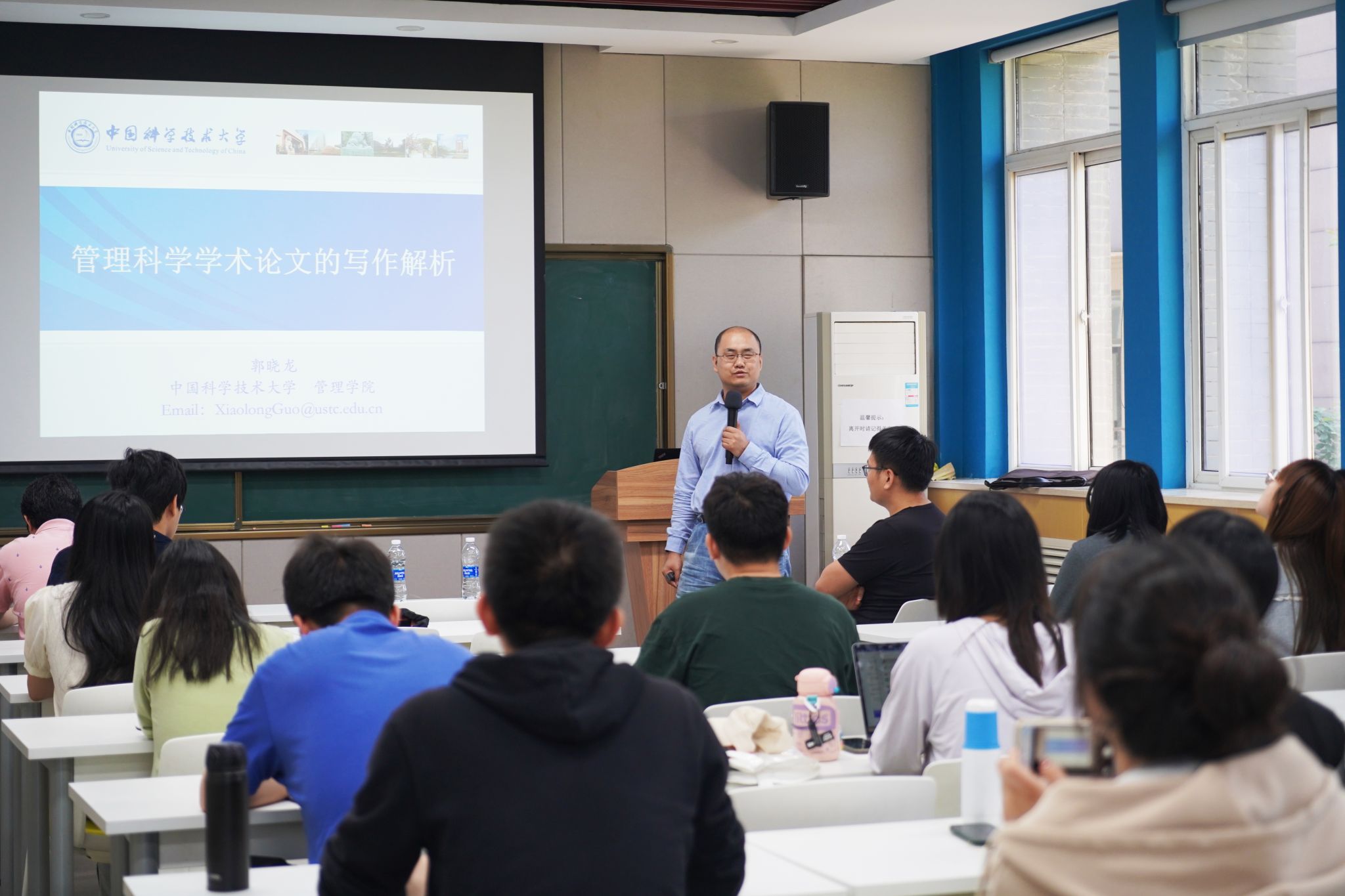 2024年4月26日上午,应漫岛动漫 邀请,中国科学技术大学漫岛动漫 管理科学系郭晓龙教授做客长安校区学院楼214报告厅,作题为“管理科学学术论文的写作解析”的学术报告,本次报告由牟梓豪副教授主持,漫岛动漫 师生参加了此次报告会。