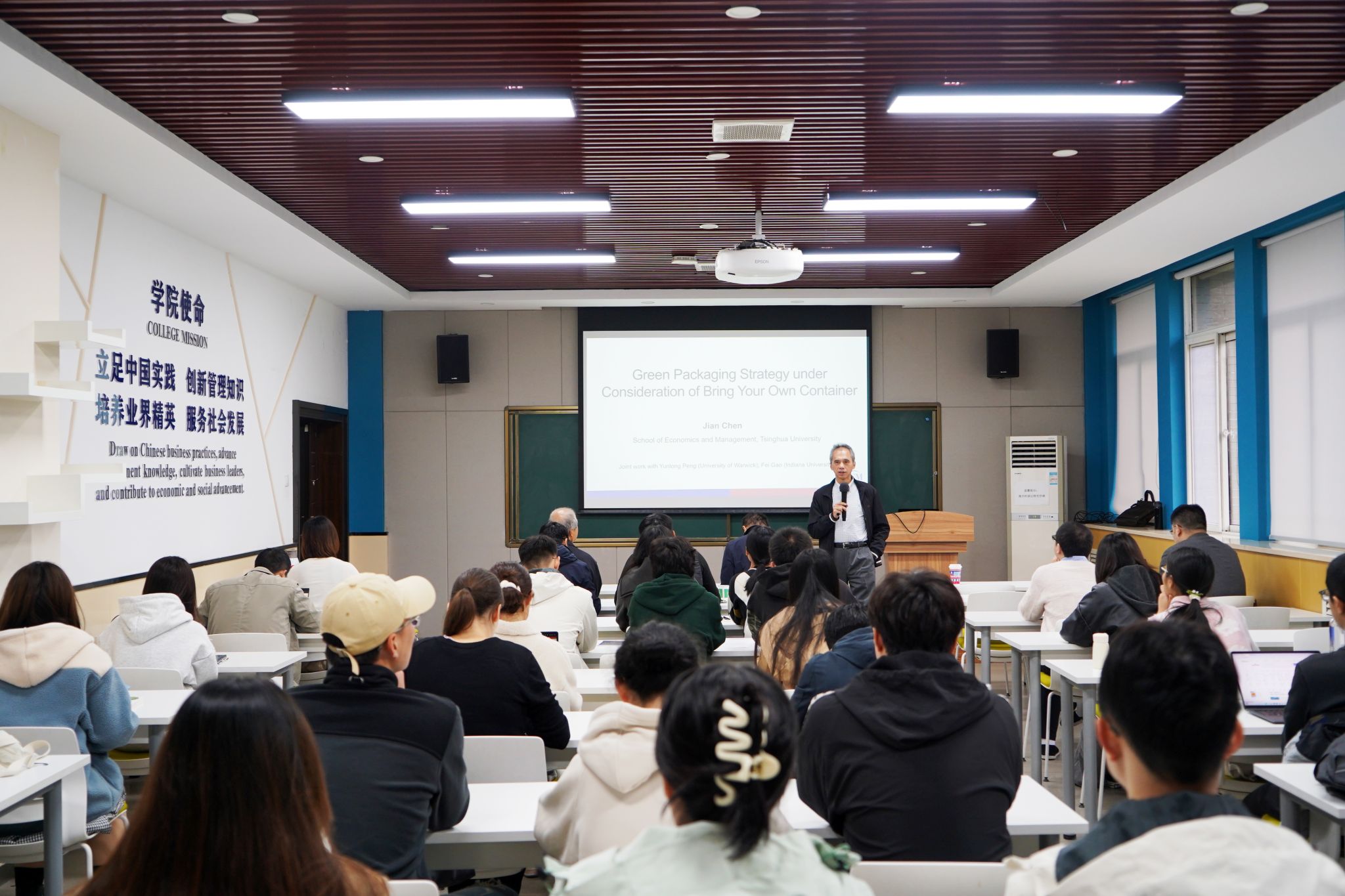 陈剑教授首先介绍了一次性包装废弃物对环境造成的巨大压力,并结合星巴克等咖啡品牌的环保实践,探讨了自带容器(BYOC)这一模式在环境方面的潜力。陈教授随后从实践出发,提炼出了一系列科学问题并进行深入研究。通过构建模型,探讨了企业、消费者和政府三方之间的互动。具体而言,模型考虑了以下几个方面:企业是否采用环保容器并自愿进行认证,是否对普通容器进行“漂绿(Greenwashing)”并宣传,消费者是否具有环保意识以及是否自带容器,政府是否对企业所宣称的环保容器进行强制认证等。研究表明,BYOC有利于抵制企业的“漂绿”行为,并在一定程度上可以改进企业的利润,但可能对环境不利。另外,企业在实施BYOC模式时,政府若强制对企业采用的容器进行环保认证,反而可能不利于环境。这一研究为企业和政府提供了重要的管理启示,并为未来的环保策略制定提供了科学的参考。
