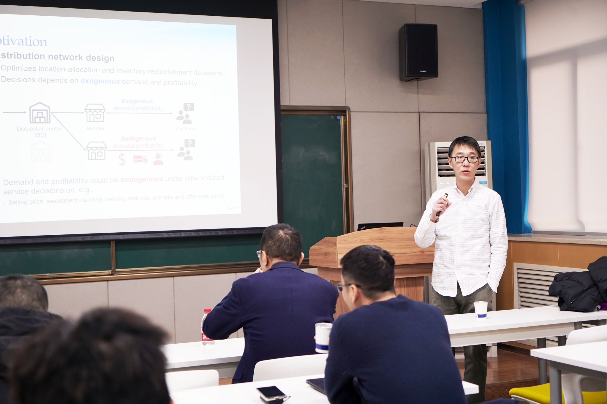 在本次报告中,舒教授以“考虑服务模式选择的供应链网络设计”为主题,向与会者介绍了其在优化领域的最新研究成果。舒教授的研究内容巧妙地结合了经典理论问题与现实应用背景,以一种创新的方式展开分析。报告中,他通过引入盒马鲜生的实际案例,深入探讨了如何在复杂的供应链网络中设计优化方案。舒教授基于这一现实背景,构建了一个经典的优化问题模型,并通过运用多项式算法,成功挖掘出了一系列全新的理论结果。报告的内容结构清晰,逻辑严谨,舒教授首先从研究背景切入,详细分析了供应链网络设计中服务模式选择的重要性,接着介绍了研究模型的构建过程及其关键假设,最后逐步推导并阐述了研究结论及其理论意义。