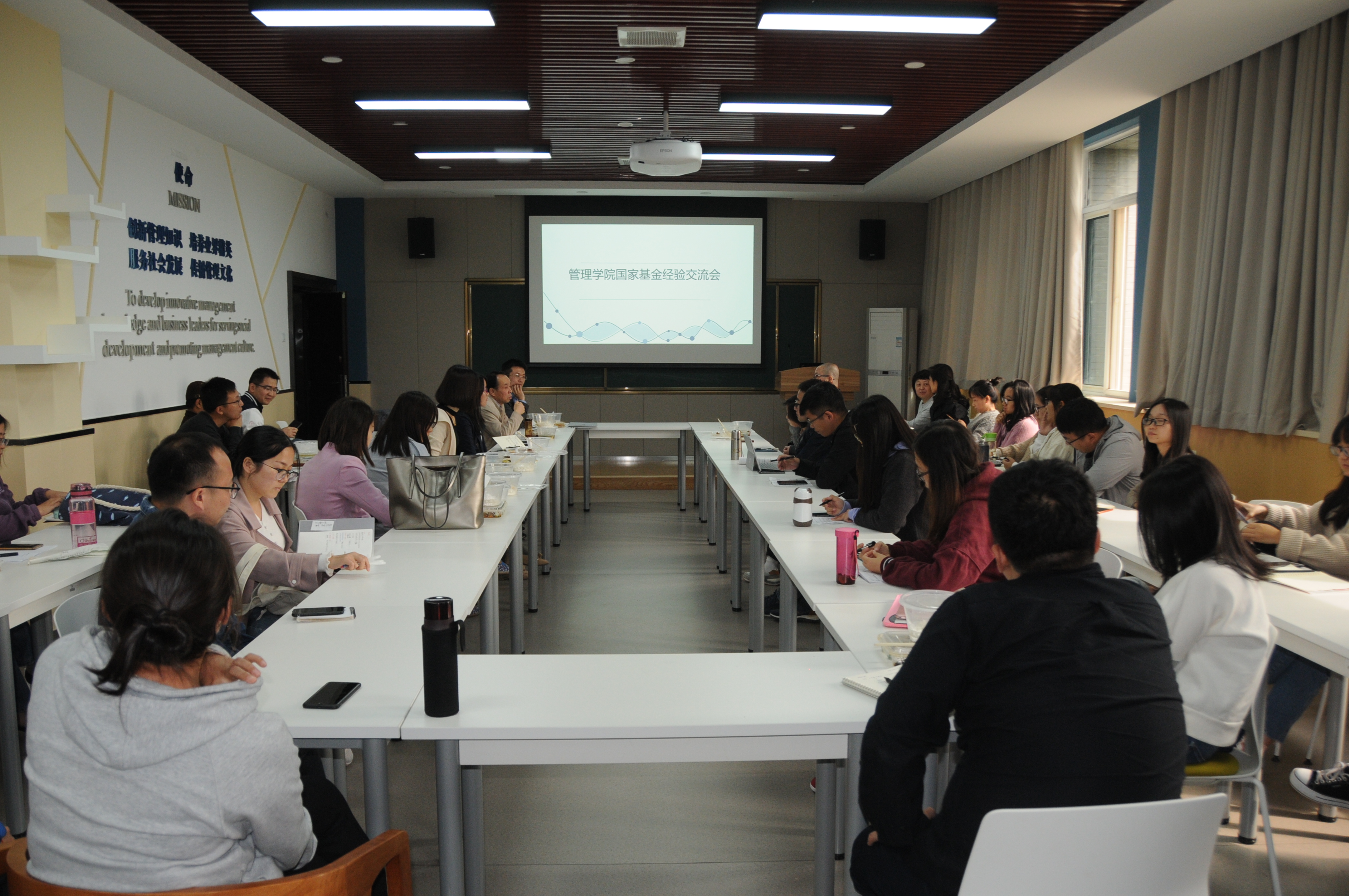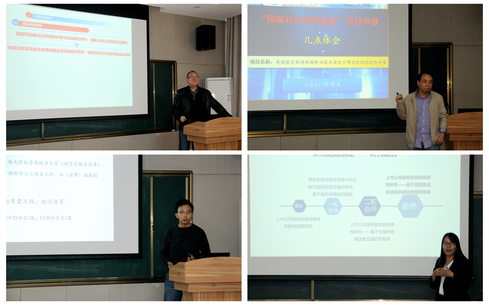 会上,学院2018年度国家社科基金项目负责人薛建武教授、方炜副教授、2018年度国家自然科学基金青年项目负责人李乘龙副教授、黄珍老师分别从研究选题的确定、研究团队的组成、研究内容的撰写、研究基础的积累和申请书的排版等细节分享了基金申请的心得体会,与会老师和博士生也就基金申请时遇到的问题进行了广泛探讨与交流。