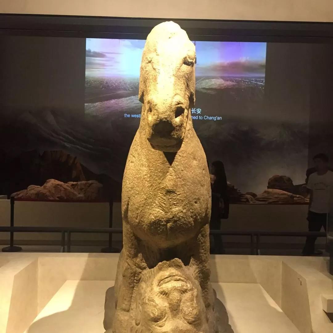 第二展厅展出的是汉朝和魏晋南北朝时期的出土文物,其中“马踏匈奴”石雕给大家留下了深刻的印象。该石雕表现了一匹昂首屹立的战马,四足下踏着一名手持弓箭的匈奴首领,以战马象征西汉政权的声威和霍去病的战功,反映了汉代人民保家卫国、抵御外侮的共同意愿,对于当时以及后世维护祖国的强大统一,起到激励与鼓舞的作用,充分体现了西汉帝国的强盛国威与积极无畏的进取精神。