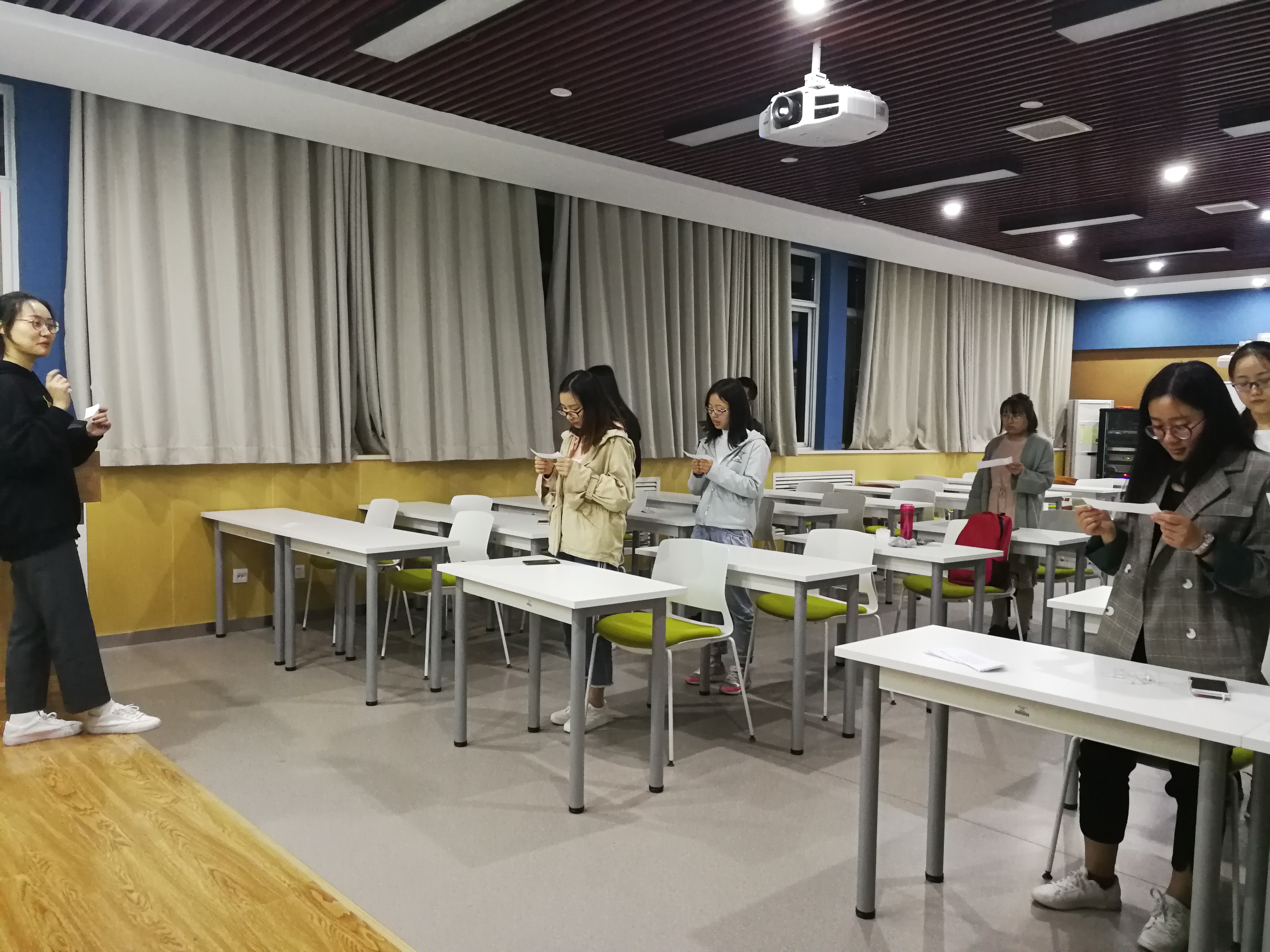第九党支部书记崔倩同志介绍了本次活动的目的,她表示,新生对校歌会比较陌生,而校歌应该属于学子们学习的一部分。在八十周年校庆之际,希望通过这个活动,给学校送上温暖的礼物。在校庆形象片的感染下,大家的积极性有了明显的提高,带着对歌词所传达出的精神的理解与向往,与会人员均声情并茂的朗诵了歌词。在漫岛动漫