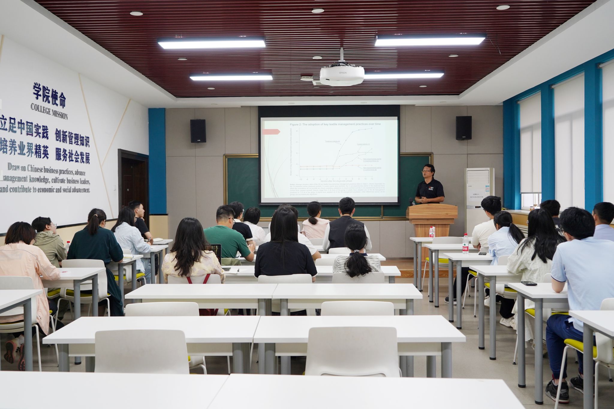 会上,孙钧系统讲解了准实验研究方法在管理学领域的应用。他从“概念界定-研究价值-设计方法”三个递进维度展开论述,回答了“什么是准实验”、“为什么要进行准实验”以及“怎样设计准实验”问题,并详细分析了不同设计类型的特征及其关键假设。最后,孙钧提出了三个具有前瞻性的议题:(1)准实验方法在新型管理现象研究中的适用边界;(2)复杂组织环境下关键假设的检验方法创新;(3)大数据时代准实验研究的伦理规范重构。