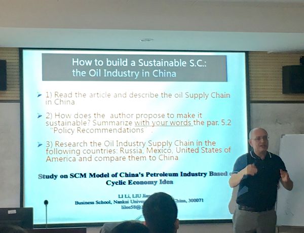 共20名学生讲授了运营管理课程,该课程主要包括理论教学、案例分析、小组讨论及展示等环节,灵活的授课形式不仅使学生充分融入课堂,同时也加深了中外学生之间的交流。Carlo Aversa教授的精彩分析得到了中外同学的一致好评,课堂气氛也十分融洽活跃。