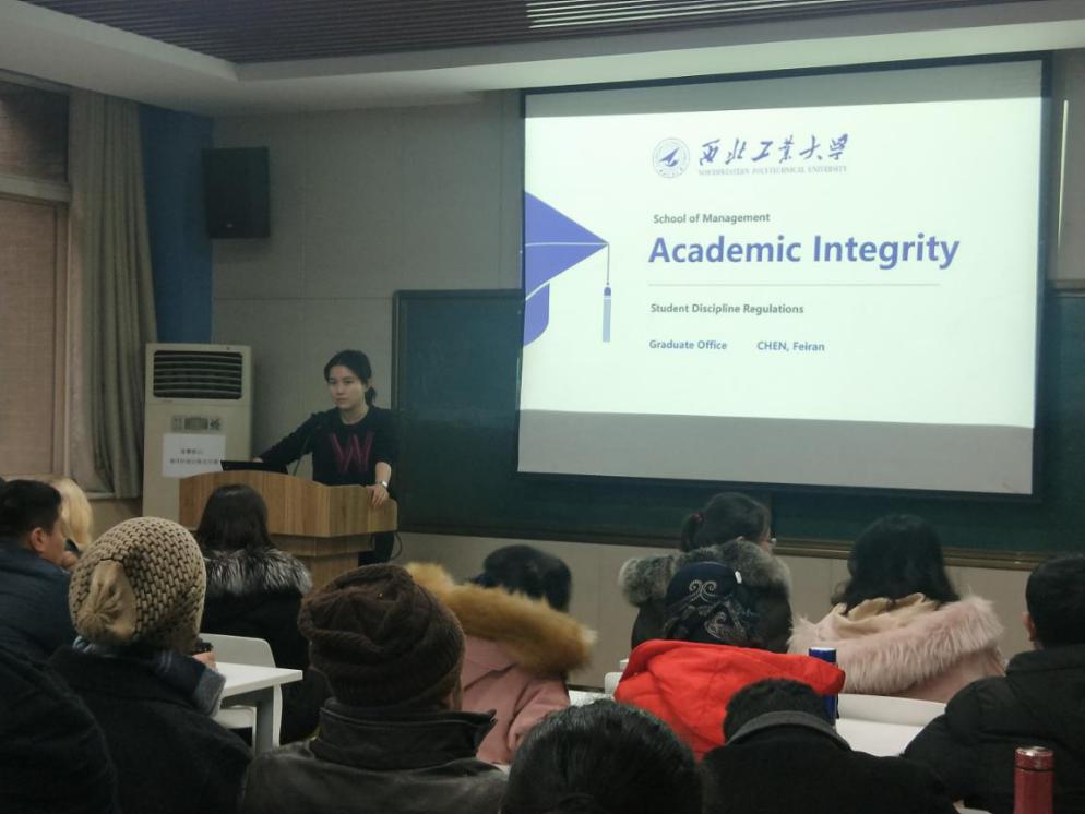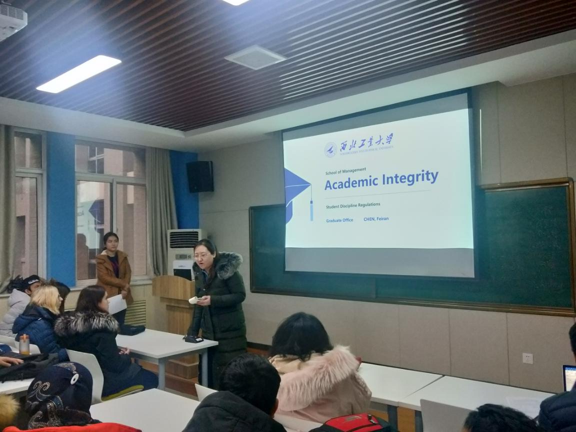 说明会的最后,副院长贾明老师和英文留学生班主任邵婧老师分别作了总结发言,再次强调了学院严肃学风,狠抓学术纪律的态度,希望大家对会上提出的问题和注意事项高度重视,同时遵守学院的考勤制度,端正学风,做好研究。