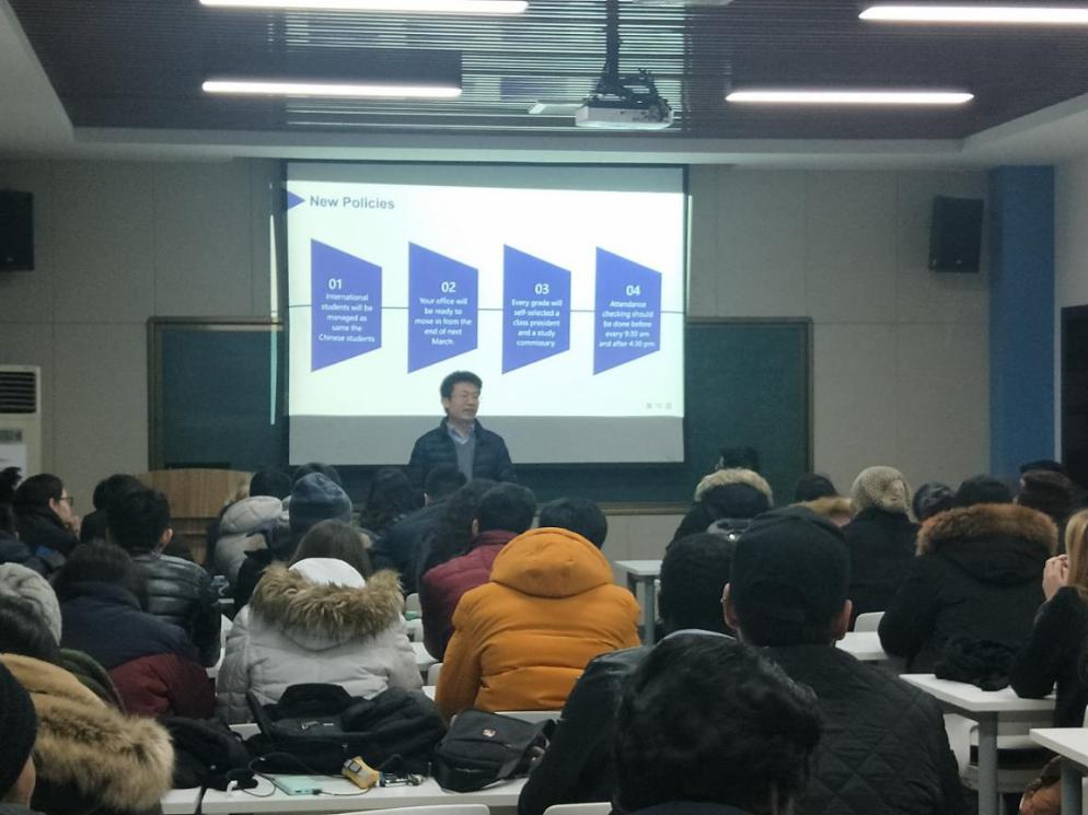 会上,首先由国际教育学院辅导员姬老师、韩老师对留学生日常生活学习管理进行简单说明,韩老师尤其强调留学生在华安全问题以及非法打工问题,指出学生应以学业为重,遵守中国法律法规。