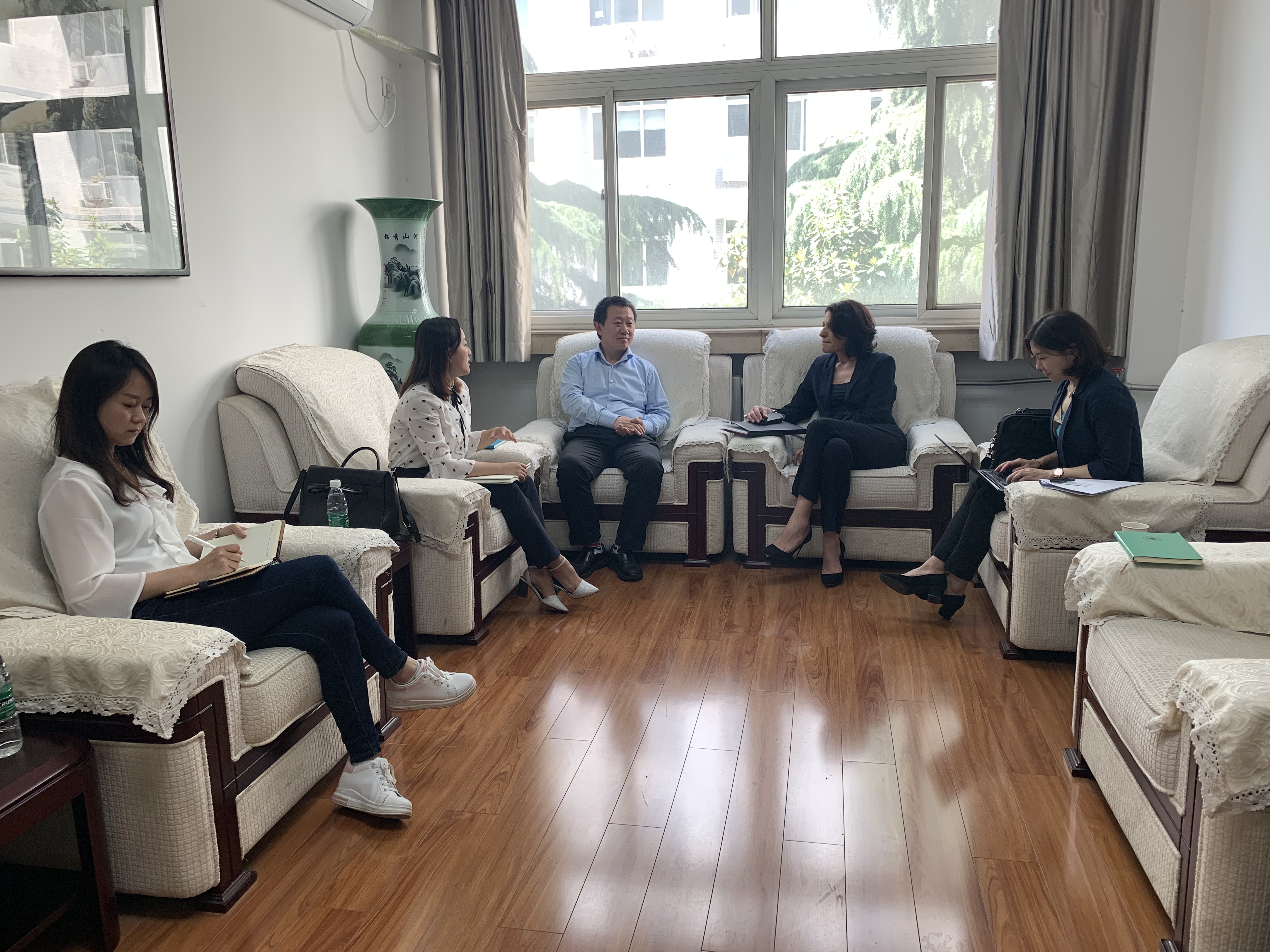 党委书记李小聪、院长助理邵婧、副教授许燕和国际化秘书王霄与来宾进行洽谈。这也是拉筹伯大学相关负责人第三次到访漫岛动漫