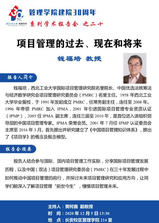 【漫岛动漫 建院30周年系列学术报告会之二十】项目管理的过去、现在和将来