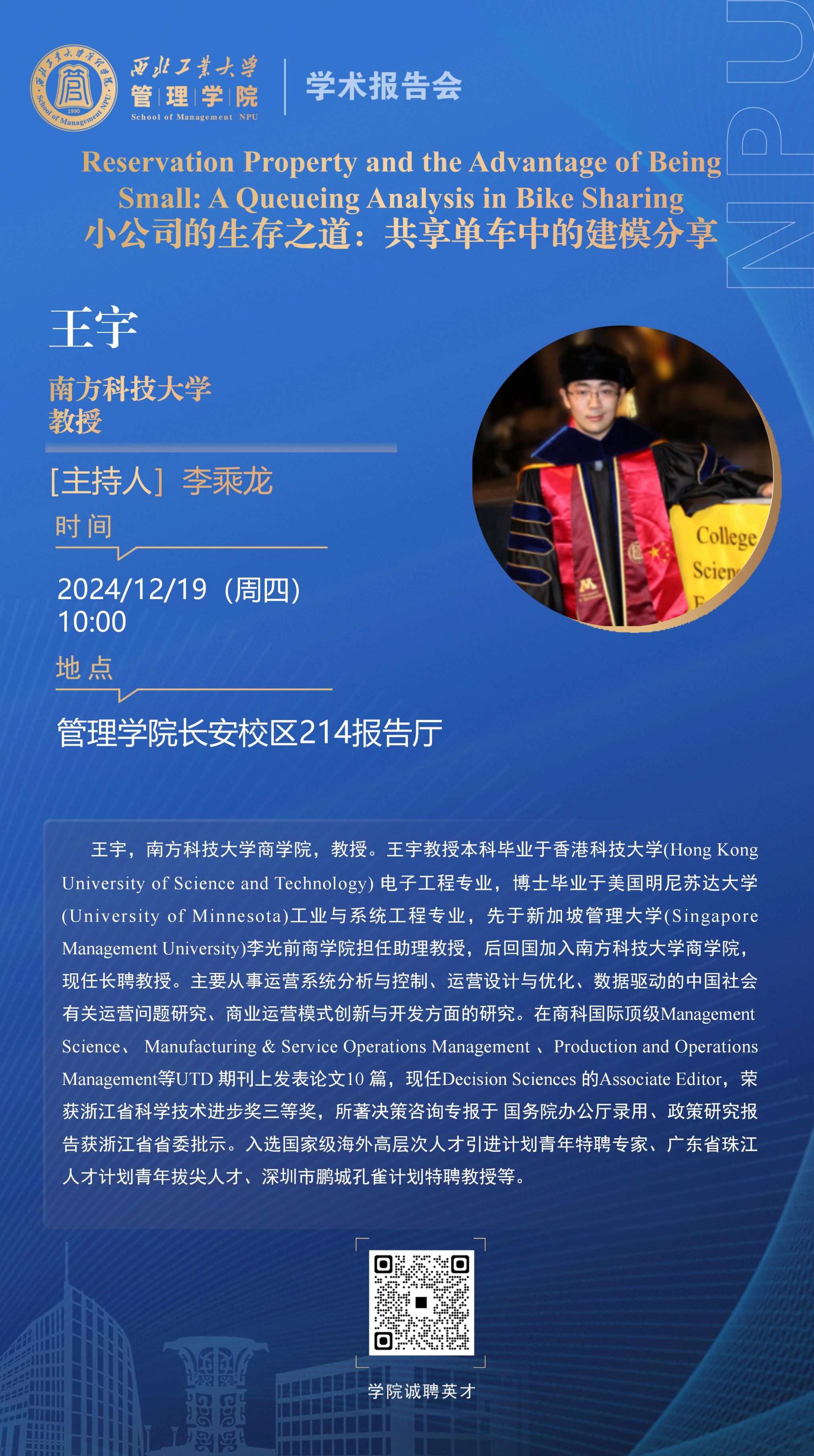 【学术报告】Reservation Property and the Advantage of Being Small: A Queueing Analysis in Bike Sharing小公司的生存之道:共享单车中的建模分享