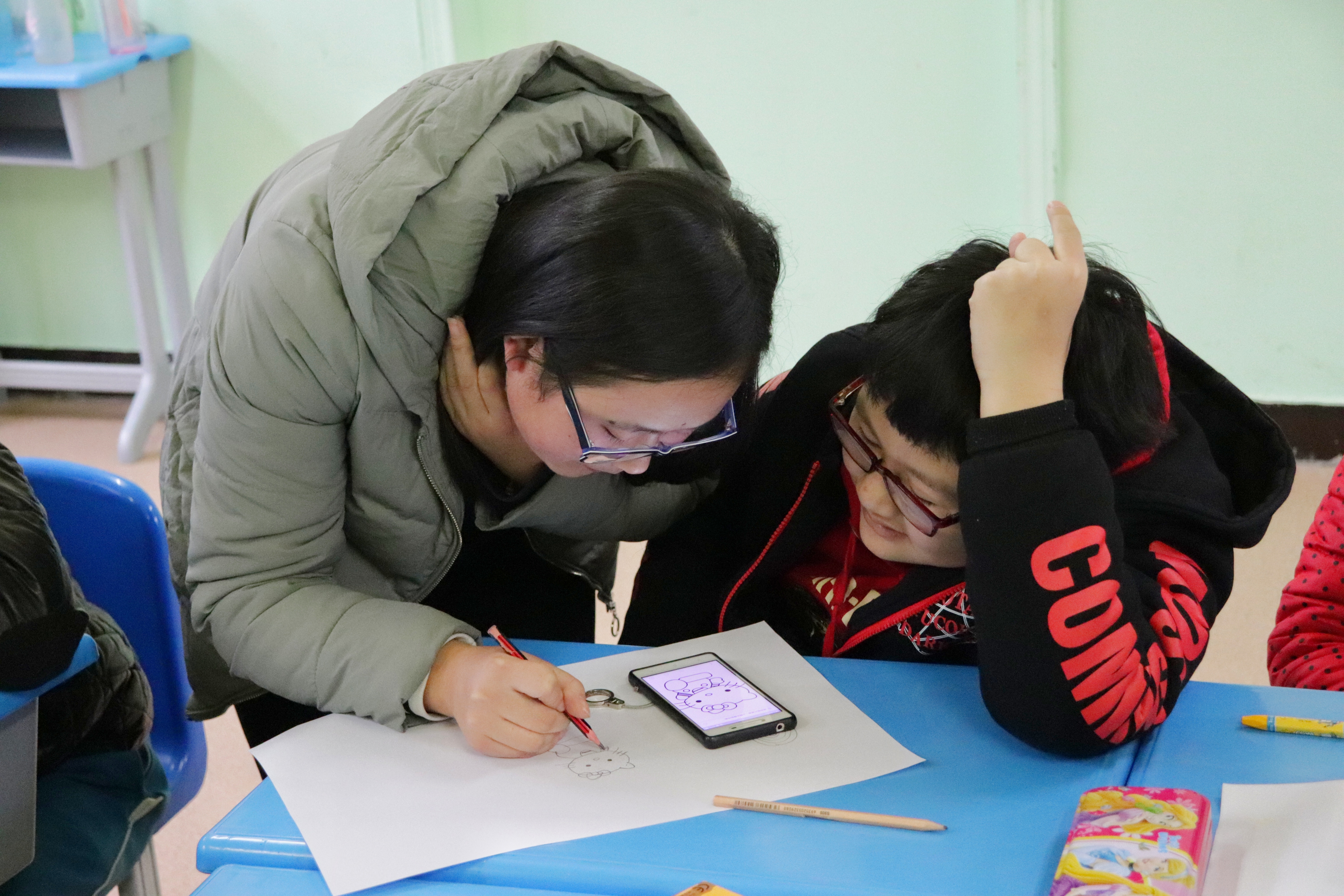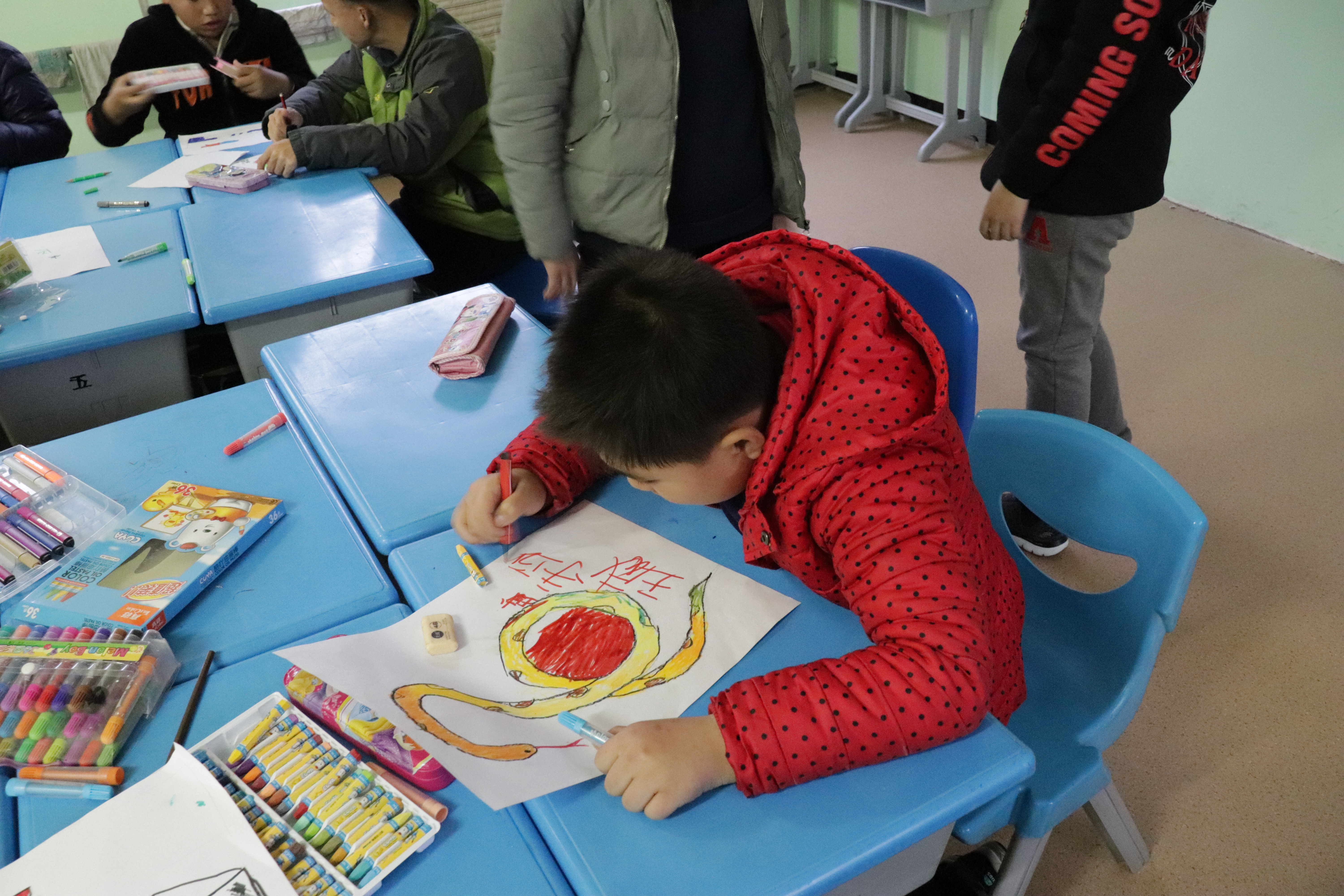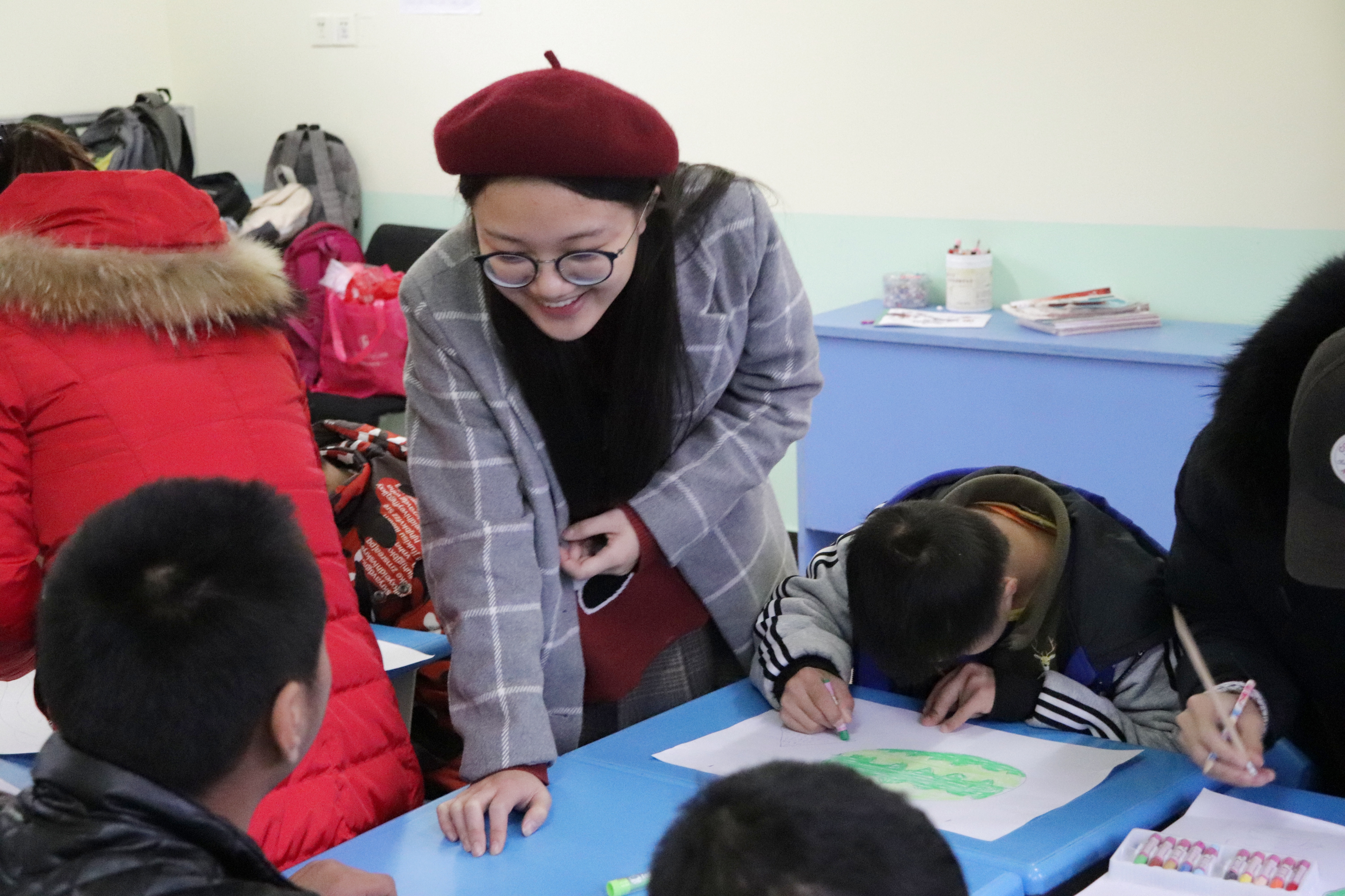 参与本次活动的志愿者共计11人,活动开始,志愿者们被分为两队,一队负责协助老师教学,一队负责打扫学校院落的卫生。辅助老师教学的志愿者们全程陪伴在孩子们身边,解答孩子们的疑惑,认真耐心地教他们如何画好一幅画。整个过程,志愿者全神贯注,不管遇到什么情况都以微笑面对孩子,给他们鼓励、呵护与温暖。与此同时,另一队志愿者在负责天爱日常打扫工作人员的带领下开始了他们的打扫工作。他们不辞辛苦,认真负责,将屋顶、广场等地的落叶、垃圾打扫的干干净净。由于学校打扫卫生的工具不多,志愿者们就用手将树叶抓入垃圾桶中,丝毫不在意弄脏手和衣服。最后,在大家的合影中本次志愿服务活动结束。