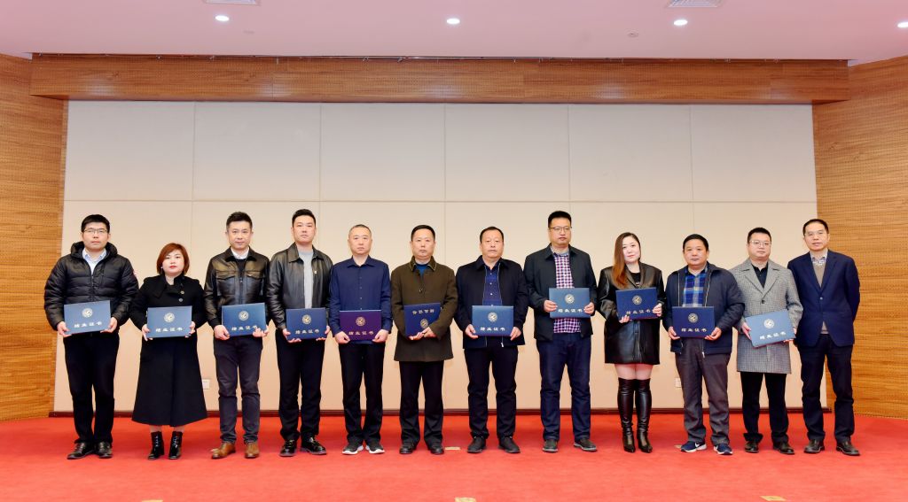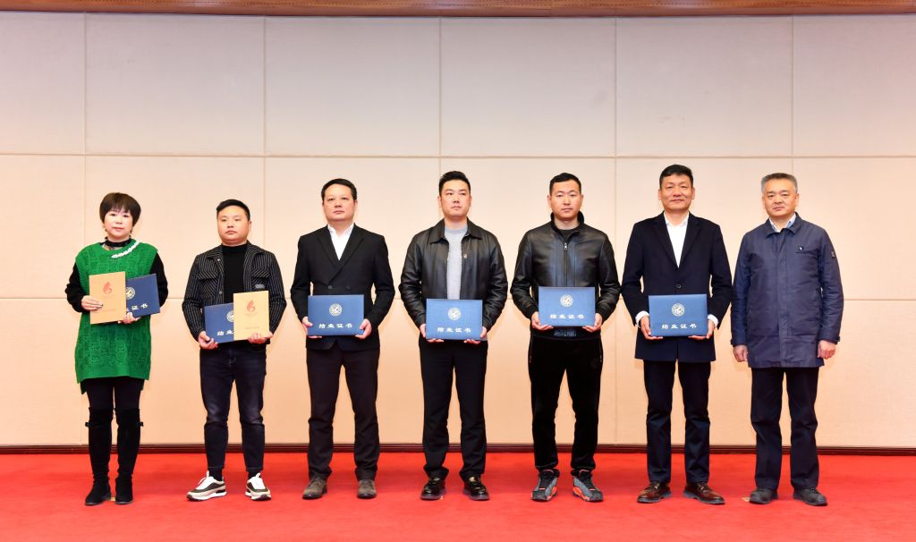 陕西省中小企业人才服务中心李卫科副主任向结业班仝根利班长颁发“卓越班长”荣誉奖牌。
