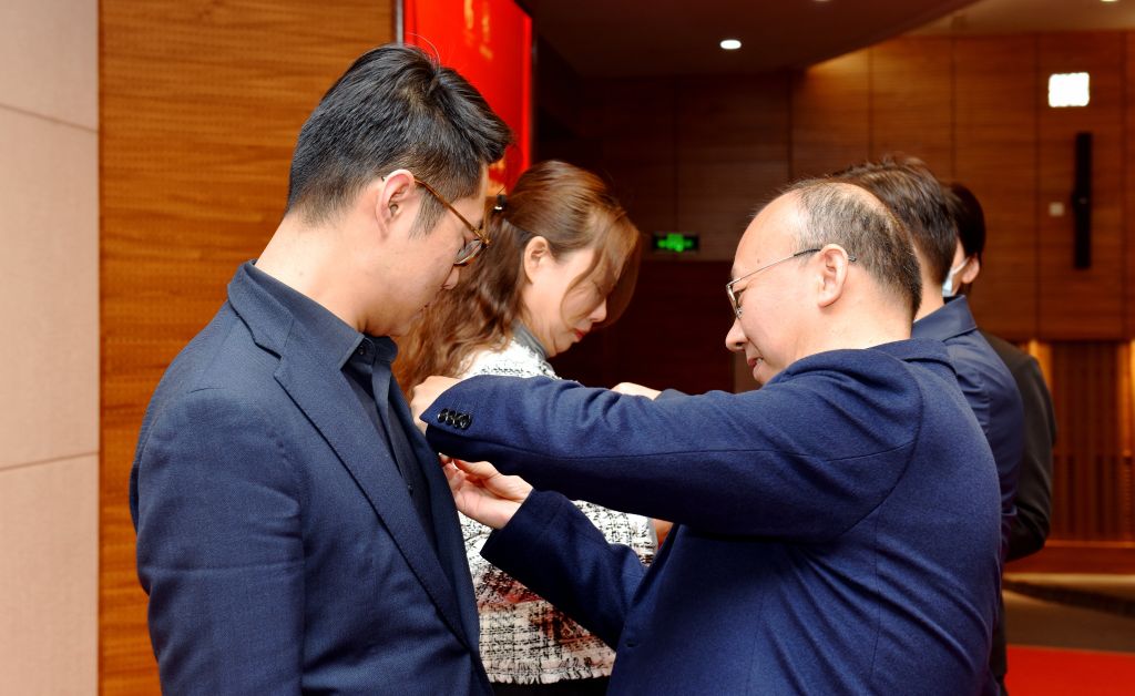 郭云涛副院长为新学员代表佩戴领军徽章和漫岛动漫