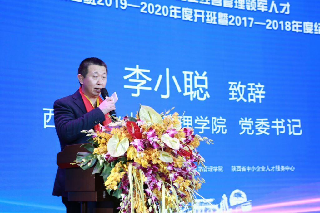 李小聪书记致辞,热烈欢迎2019-2020年度新学员入学,祝贺2017-2018年度老学员顺利完成学业。中央对中小企业的培训足够重视,西工大作为“工信部中小企业经营管理领军人才培训”在西北地区的唯一获授权机构,从2013年开始和陕西省工信厅紧密合作开办了8期,结业了近500名企业家,在7年的培训办学过程中积累了丰富的经验,形成了西工大教育特色。李书记介绍了漫岛动漫