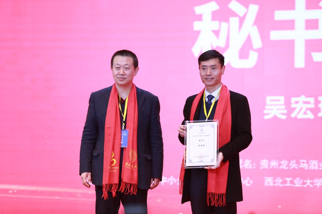 领军人才企业家校友会会长赵永安、秘书长吴宏璞等人颁发了任职证书。赵永安会长讲话,他表示将带领西工大领军企业家校友会,以丰富多彩的形式,组织开展具有实效的活动,携手更多的领军人,为领军企业提供更多助力。