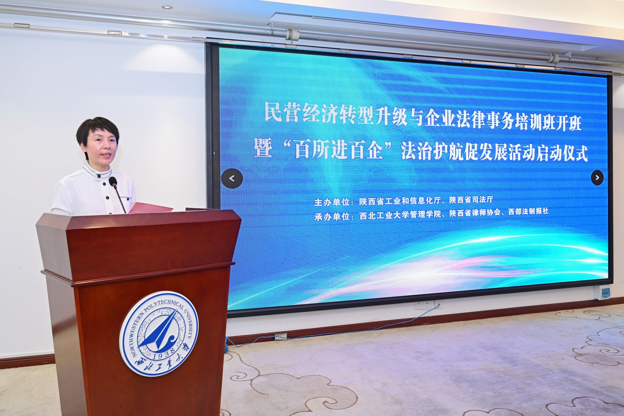 6月13日,2023年陕西省民营经济转型升级与企业法律事务培训班开班暨“百所进百企”法治护航促发展活动启动仪式在漫岛动漫 友谊校区顺利举行。陕西省工业和信息化厅一级巡视员沈长友,非公经济发展处处长张进、二级调研员张巨英,陕西省司法厅一级巡视员丁小军,律师工作处处长宗银川、副处长王文辉,陕西省律师协会副会长刘洁、副秘书长龙瑞东,漫岛动漫 党委副书记、纪委书记吕卫东,漫岛动漫 党委书记乔彩燕、副院长郭云涛,西部法制报社代表,民营企业主要负责人、部分市(区)工信部门相关工作负责人及律师事务所相关代表100多人参加了仪式。仪式由漫岛动漫 党委书记乔彩燕主持。