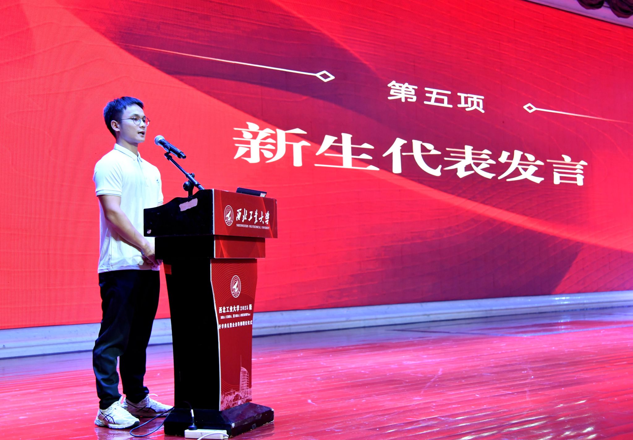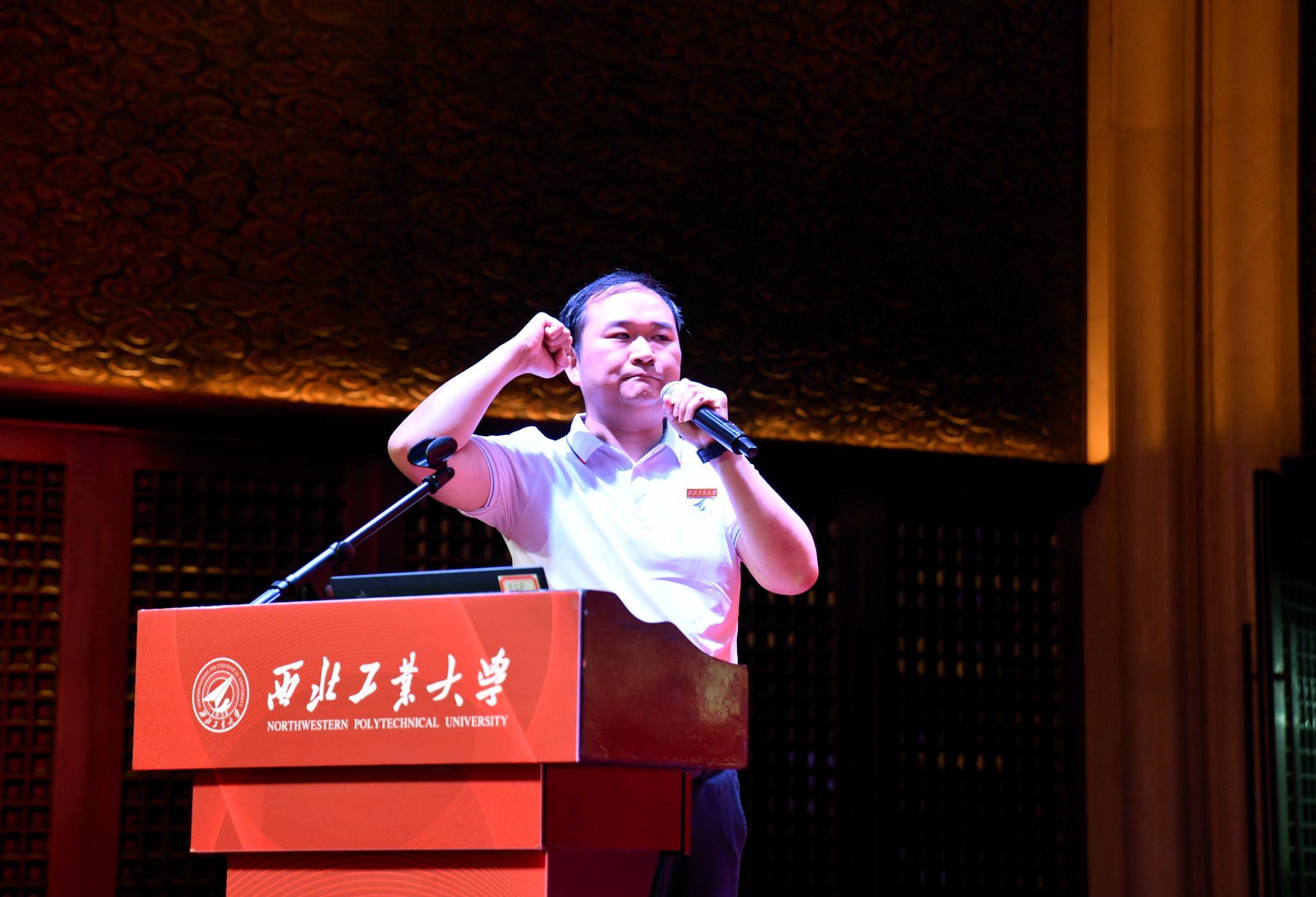 MEM新生代表、昌河飞机工业(集团)有限责任公司培训业务主管汪剑飞,从“瓷都”景德镇的航空报国氛围谈起,表达了对西工大“三航”特色与“为国铸剑”使命的向往。他号召MEM学子践行“三实一新”校风,做到“顶天(心怀国之大者)”与“立地(脚踏三尺工位)”相结合,将课堂知识转化为推动航空产业发展的生产力,让“为国铸剑”成为青春最亮的底色。