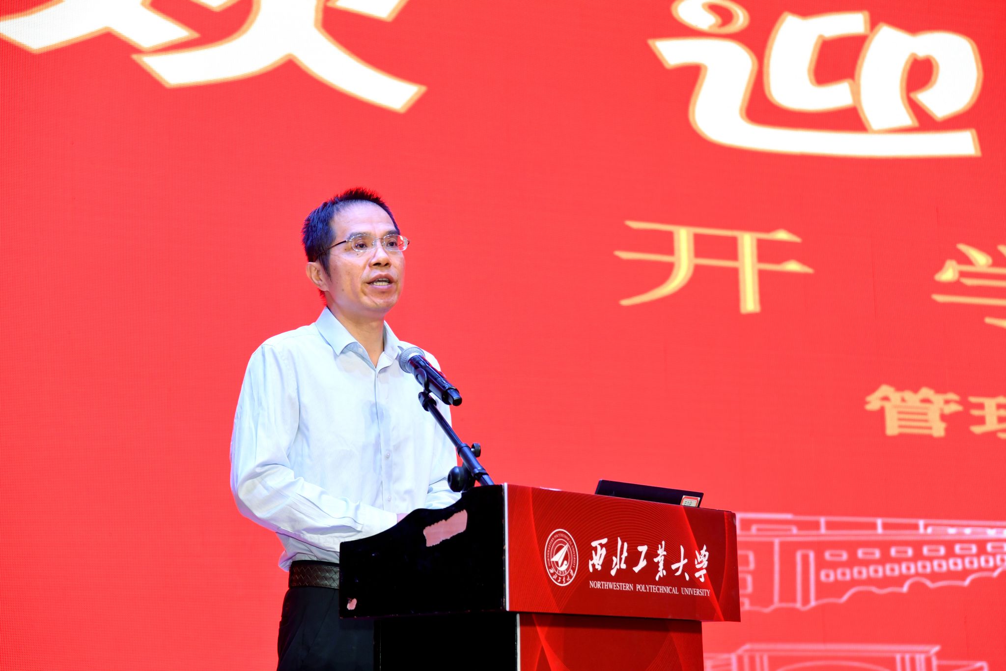 MBA新生代表、中国科学院西安光学精密机械研究所副主任设计师王磊,结合自身十余年参与地面靶场、航空航天类工程项目的经历,分享了“将个人奋斗融入国家需要”的深刻感悟。他表示,选择攻读MBA是为了提升体系化管理与战略规划能力,未来将与同学们在西工大互学共进,既做专业领域的“铸剑人”,更做新时代中国发展的“答卷人”。呼吁大家在这方充满机遇与挑战的天地里,镌刻属于我们的荣耀,为个人成长添彩,为国家发展助力!