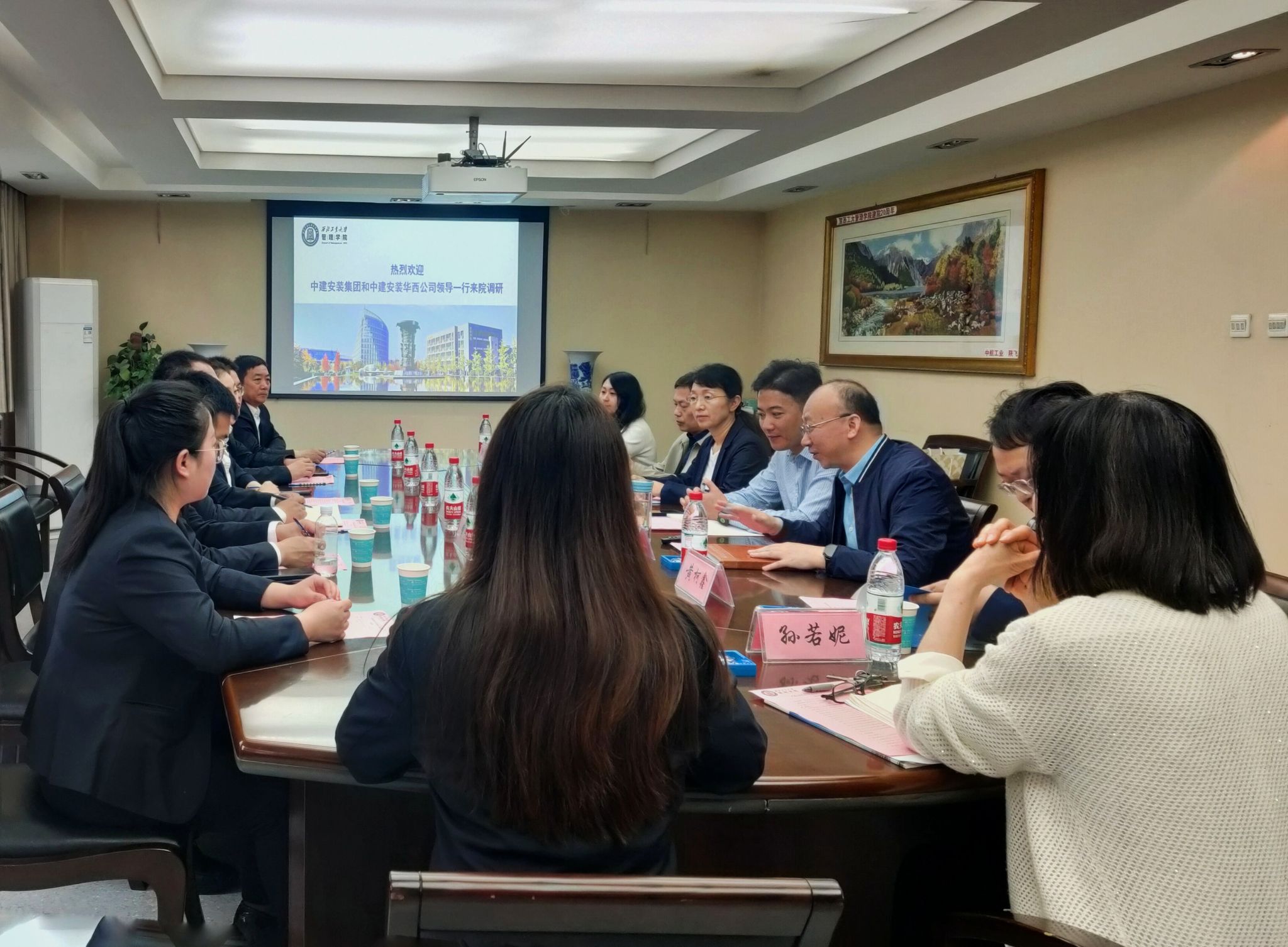 郭云涛副院长首先代表学院对朱玉伟副总经理一行表示热烈欢迎,并简要介绍了学院的发展概况以及学科建设、教学科研、师资队伍建设、人才培养、国际交流等方面的情况,王兆旭副书记就学院的学生实习实践、就业等方面的情况进行了说明。朱玉伟副总经理和曹志新书记分别介绍了中建安装集团和中建安装华西公司的基本情况与发展现状。随后,双方围绕深化院企合作、推进产教融合,就毕业生就业、学生实习实践,聘请企业导师、在职研究生培养、培训等方面进行了深入的探讨和交流。陈乐总经理表示希望未来能够多多引进西工大漫岛动漫