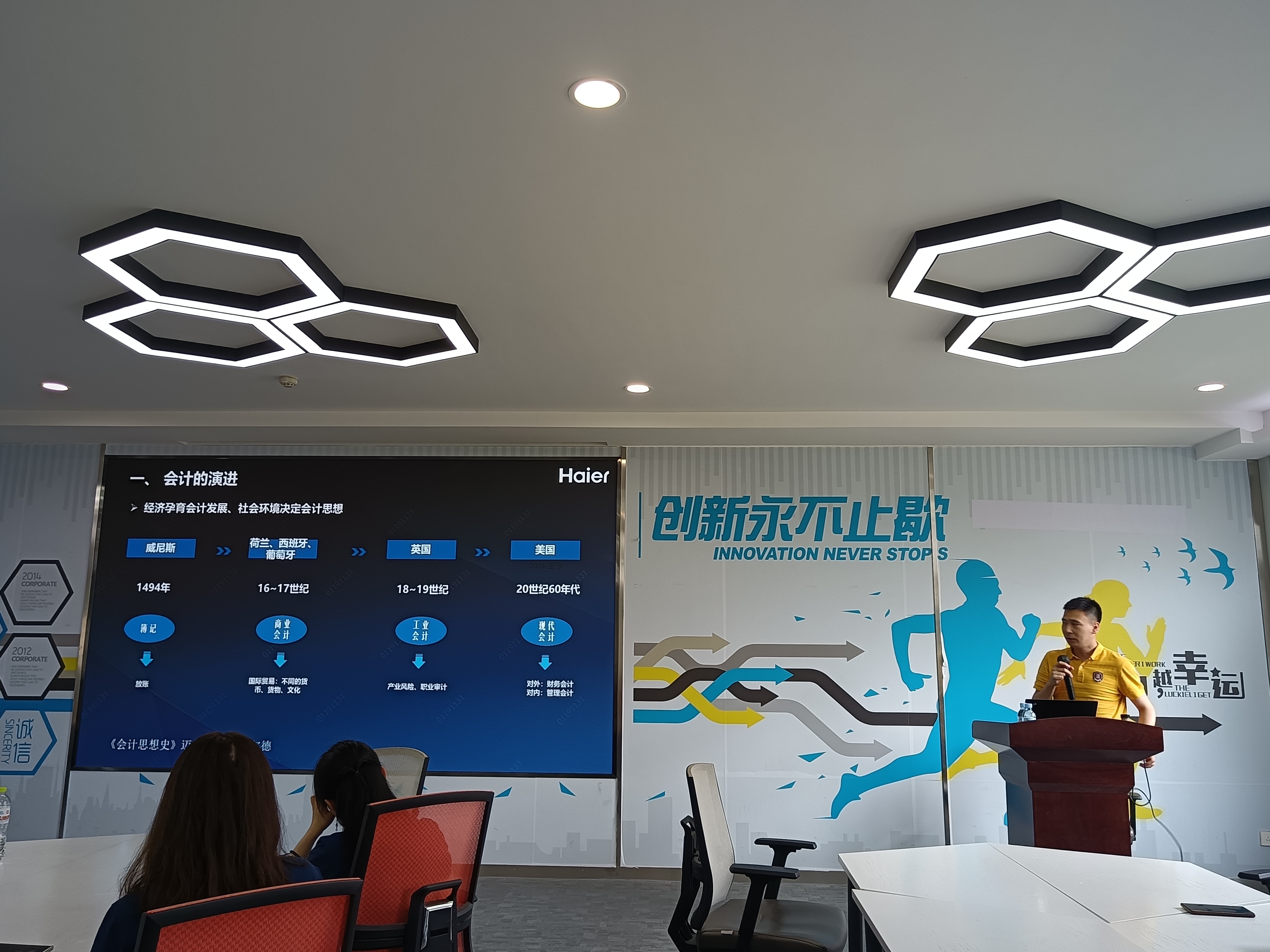 优秀校友、海尔财务创新总监敖翔先生对老师和学弟学妹们的到来表示热烈欢迎,并为大家分享了海尔人单合一和共赢增值表相关内容,介绍了生态视角下的新价值逻辑、发展及应用,并与同学们进行了深度探讨。之后,访学团参观了海尔文化、生活展,详细了解了海尔集团从一个破落的小厂励精图治,到发展成为国际知名企业的艰辛历程,对海尔集团的战略、文化有了更深刻的感悟。