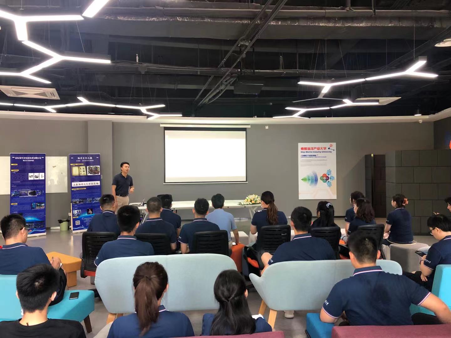 师生的到来表示欢迎,并以《数据湖产业园业务模式的探索》为题,从产业地产特点、开发主体、产业运营模式以及盈利模式等方面进行详细讲述,介绍了华录集团项目-海洋生活与数据产业融合的蓝谷项目,让同学们直观了解到产业园的业务运营模式,同时感受大数据智慧产业园的魅力。讲座之后,访学团参观了易华录集团展厅,了解其智能交通、蓝光存储、文化产业三大板块的核心业务,通过实际案例展示让同学们对智慧海洋大数据产业有了清晰的认知。最后,访学团参观了漫岛动漫