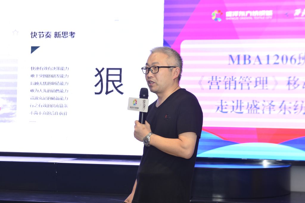 为提升MBA学生知行合一能力,6月5日下午,MBA教育中心组织了“走进盛泽东方纺织城(简称东纺城)”的移动课堂,常老师带领同学们来到东纺城开始了一场以“时尚行业的跨界营销”为主题的营销管理移动课堂活动。