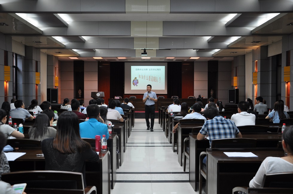 此次讲座,作为新生入学教育的一部分,在2015级MBA、MEM开学典礼后进行。