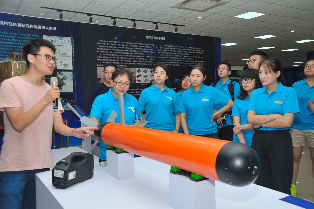 讲座结束后,新生们走进西工大青岛研究院三航展厅,深入了解学校悠久的历史和对国家在航天、航空、航海做出的杰出贡献,加深了对学校及学院的了解和归属感。