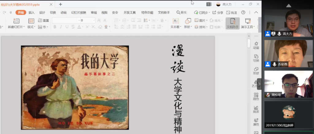党委书记乔彩燕主持,约200名学生在线聆听了讲座。