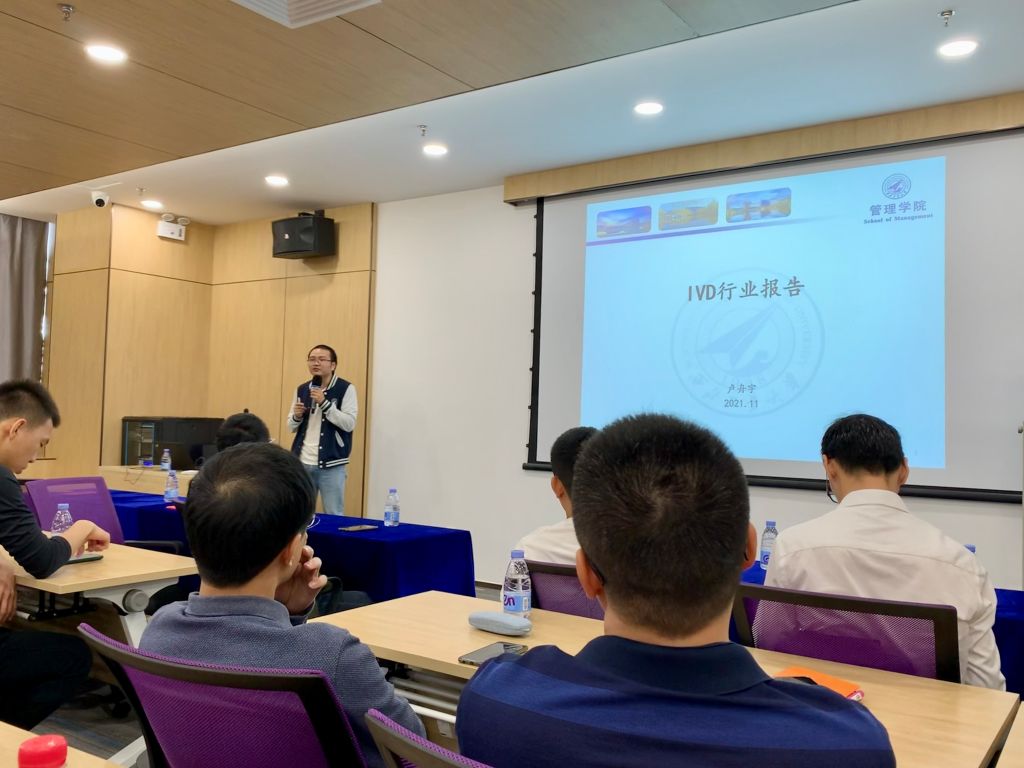 卢舟宇作为亚能生物技术(深圳)有限公司项目经理,分享主题为《IVD行业的发展》。他从生物医疗行业的基本情况、行业发展趋势出发,分析当下的行业格局、目前全球医疗器械市场的规模情况以及国内IVD企业存在的问题,并从生物基因角度,向同学们解释了基因检测原理和方法的科学性与必要性,展示了分子诊断技术与人类健康事业的紧密联系。